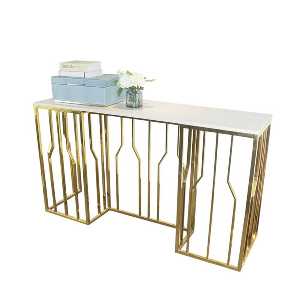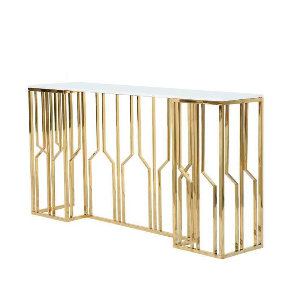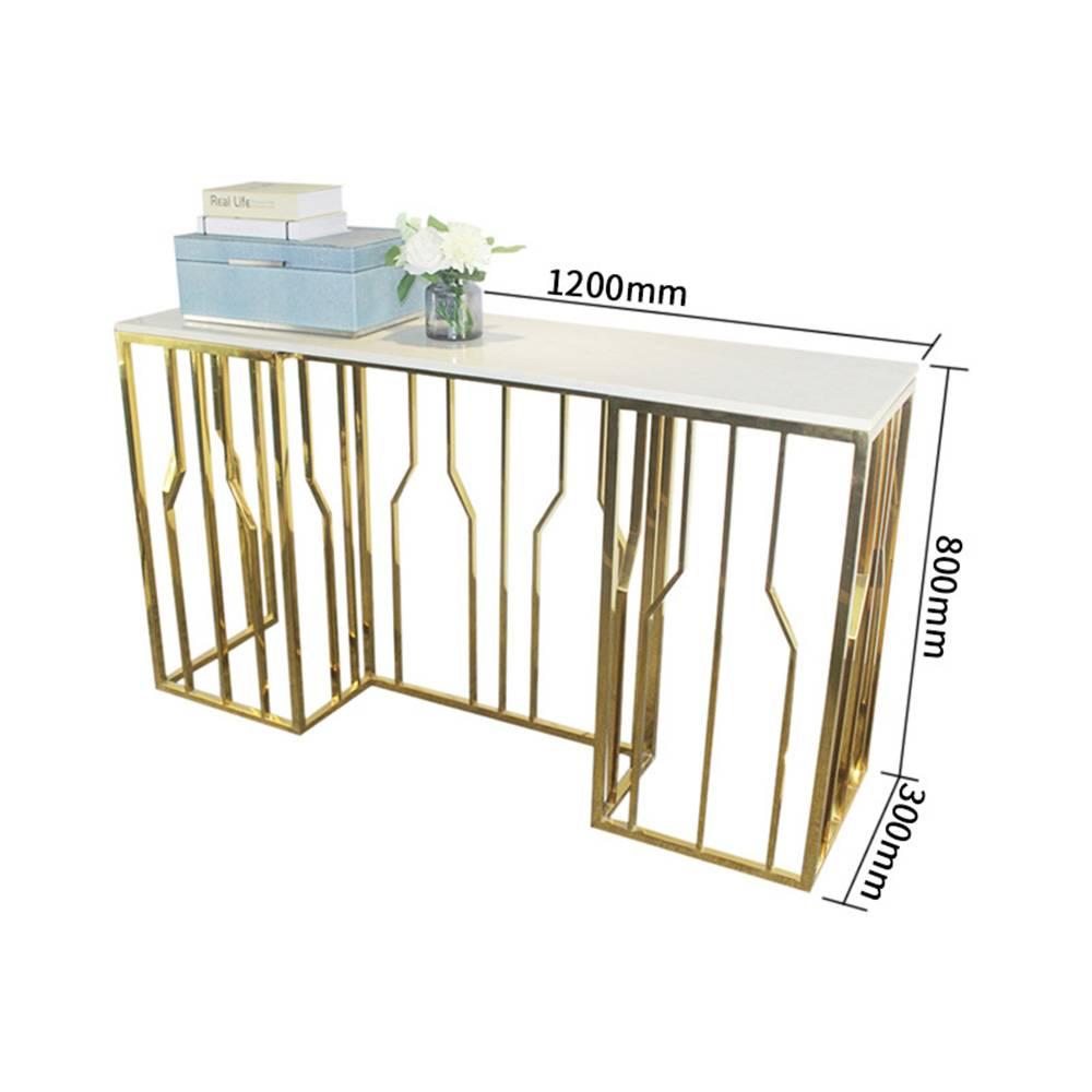 Chất liệu chính: Sắt; Màu sắc: Vàng đồng; Thời hạn bảo hành: 24 tháng; Thời gian giao hàng: 7-10 ngày; Phòng chính: Phòng khách; Phòng khác: Phòng khách; Yêu cầu lắp đặt: Có; Bộ sưu tập: Bộ Venice; Tình trạng tồn kho: Đặt đóng; Phong cách: Retro; Hoàn thiện: Sơn tĩnh điện; Kích thước (mm): 1200 x 300 x 850; Chức năng: Bàn trưng bày; Loại sản phẩm: Bàn; Xuất xứ: Việt Nam; Đơn vị tính: Cái; Kiểu dáng: Hình chữ nhật; Tùy chọn mặc định: Màu sơn như hình;