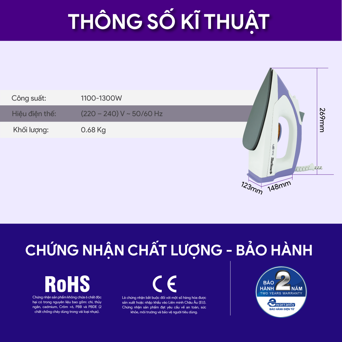 ✨Bàn Ủi Khô BlueStone DIB-3728 1100-1300W - Hàng Chính Hãng