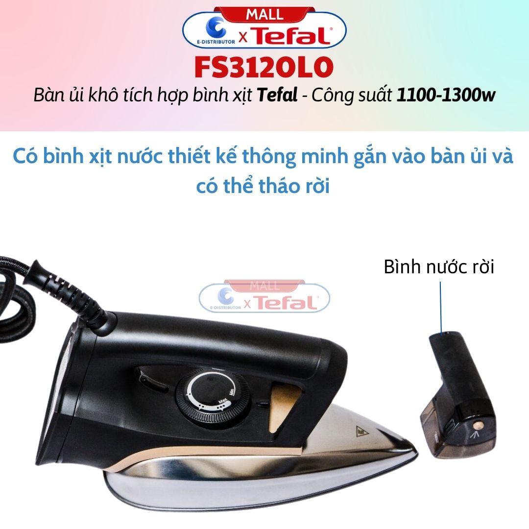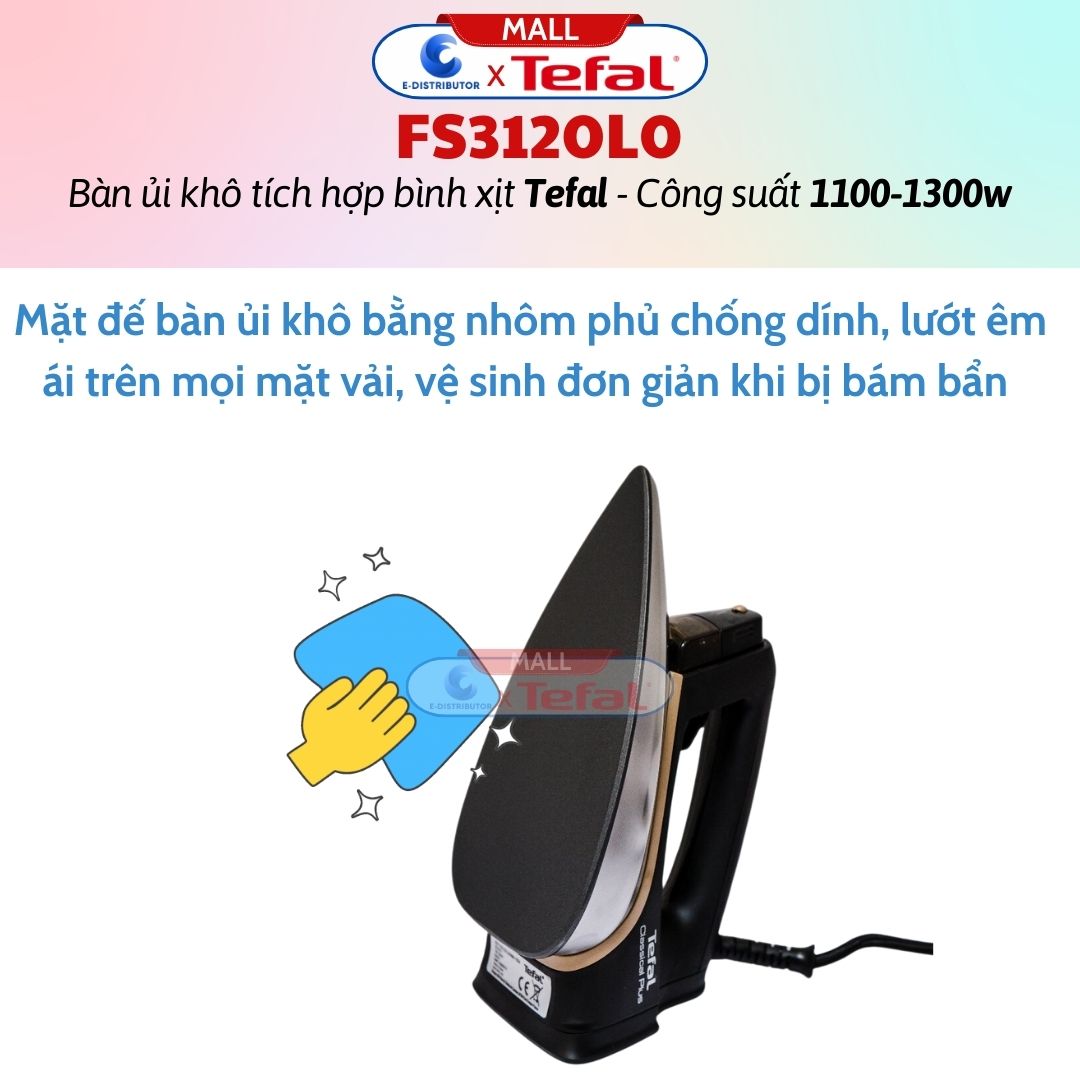 ✨Bàn Ủi Khô Tích Hợp Bình Xịt Nước Tefal FS3120L0 - Công Suất 1300W - Hàng Chính Hãng