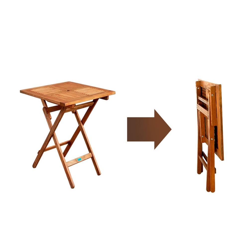 Bàn xếp vuông Gorontalo có chiều cao 72cm, với nhiều loại đường kính 60cm,70cm, 80cm, được làm từ gỗ dầu Nam Phi nhập khẩu nên có khả năng chịu mưa nắng tuyệt vời, gia công sắc xảo, đáp ứng các tiêu chuẩn xuất khẩu vào các thị trường khó tính như Nhật Bản, Hàn quốc... Chất gỗ dầy dặn, nan gỗ được xử lý trơn nhẵn an toàn cho người ngồi. Thiết kế xếp gọn tiện lợi, tỷ lệ cân đối, tạo nên kết cấu vô cùng chắc chắn, đảm bảo sử dụng lâu bền. Với kích thước đa dạng, bàn xếp vuông Gorontalo có thể kết hợp với nhiều mẫu ghế như Sumur, Paradiso, Rupat... để đặt ở ban công hoặc ngoài trời, phù hợp với những buổi cafe sáng, trà chiều thư giãn, ngắm cảnh hay những buổi tiệc tùng cùng người thân, bạn bè.