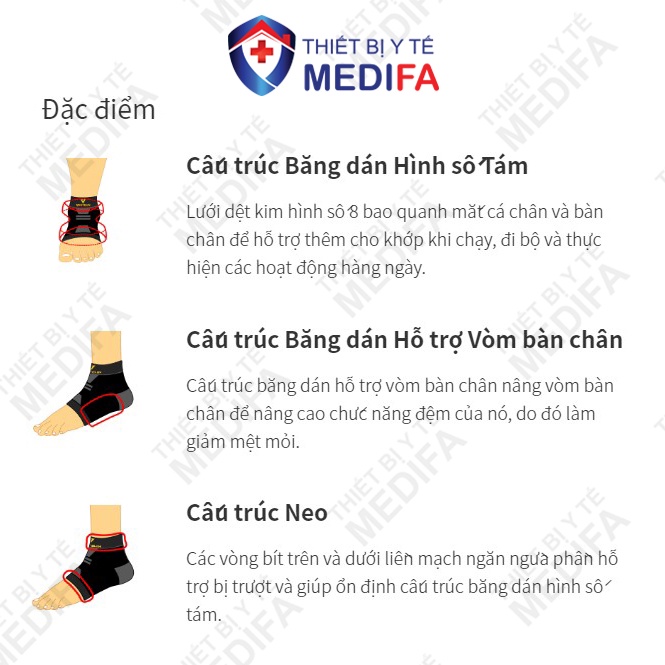 - Đai bảo vệ cổ chân Vantelin được cấu tạo thiết kế theo nguyên lý băng dính y khoa: