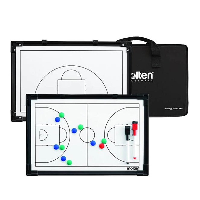 Bảng chiến thuật bóng rổ Sản xuất tại: Đài Loan Nhãn hiệu: Molten Kích thước: 45 x 30,5cm Bảng với các mảnh từ tính, đánh dấu màu xanh lá và xanh navy. Có túi đựng.