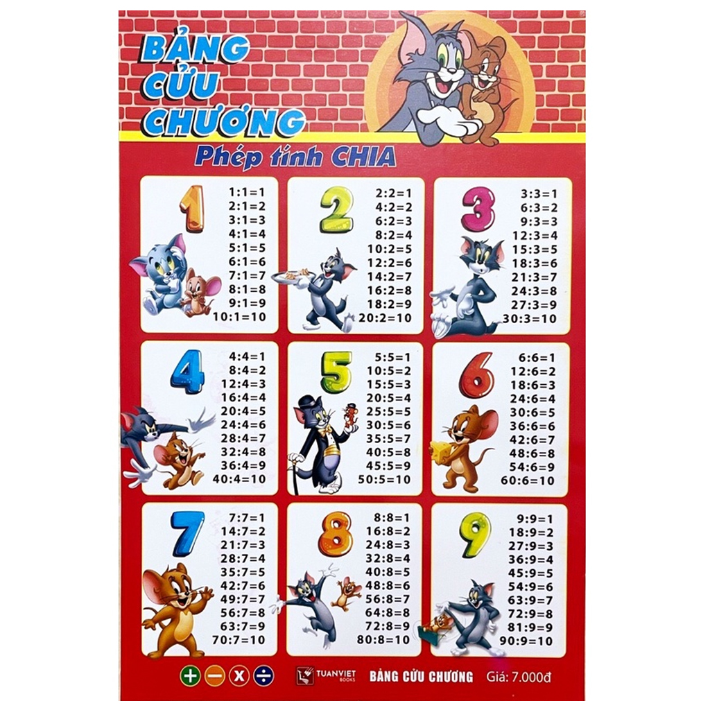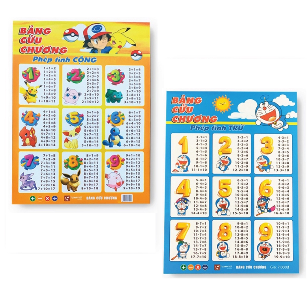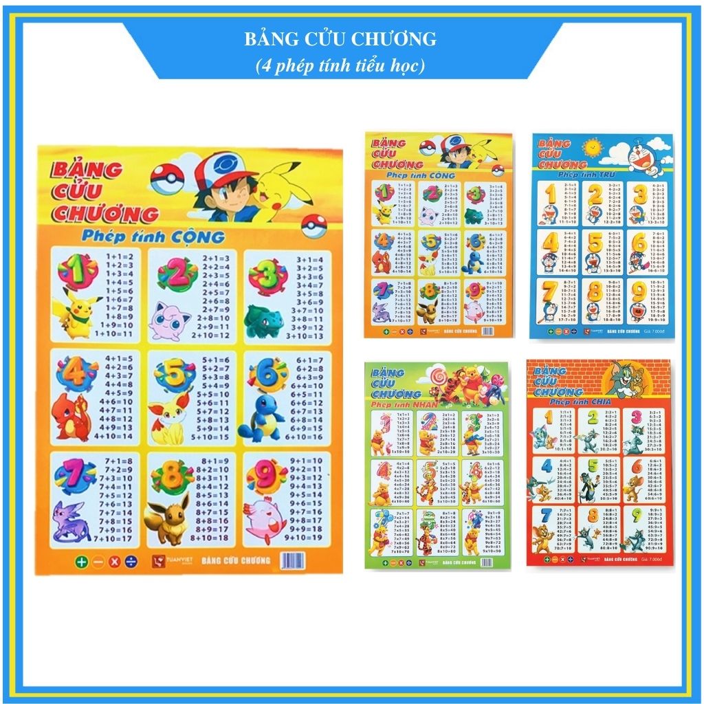 GIỚI THIỆU: Bảng Cửu Chương Phép Tính Cộng, Trừ, Nhân, Chia - In Màu 2 Mặt, mỗi mặt 1 phép tính.