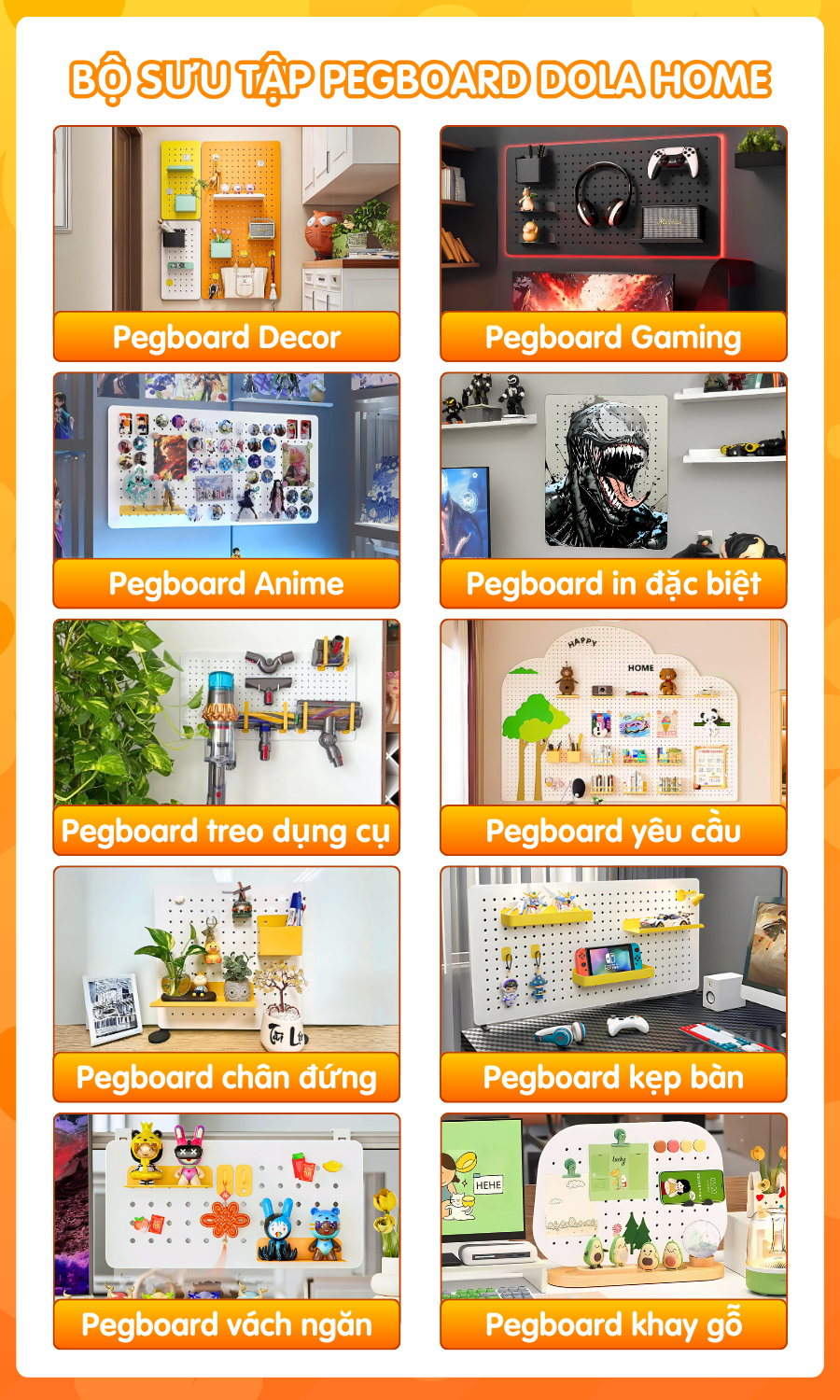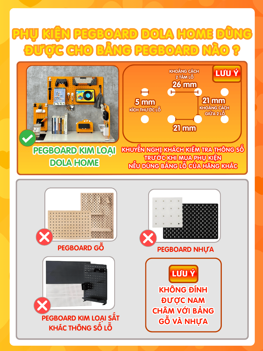 Bảng lỗ Pegboard Dola Home kim loại cao cấp tiện dụng trang trí phòng khách phòng ngủ phòng làm việc bảo hành 12 tháng.