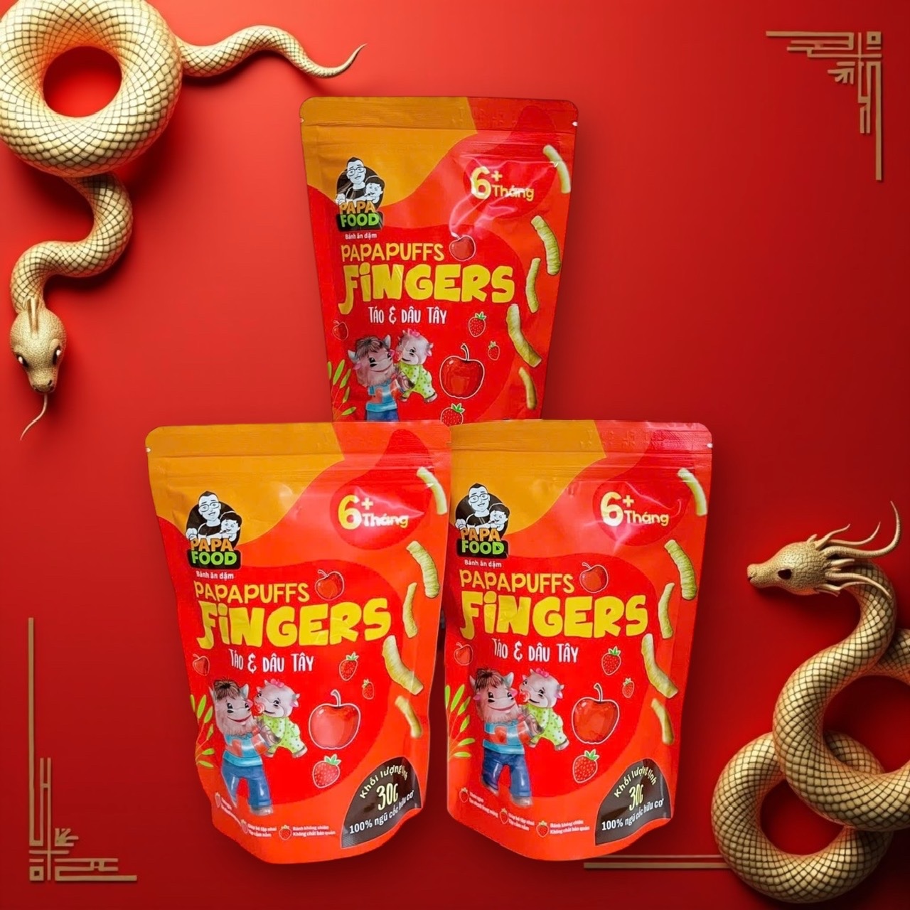 1. Tên sản phẩm: Bánh ăn dặm PAPAPUFFS FINGERS - VỊ RONG BIỂN VÀ CÀ RỐT . 2. Thành phần: Được sản xuất từ 100% Ngũ cốc Hữu Cơ - Gồm gạo lứt hữu cơ,