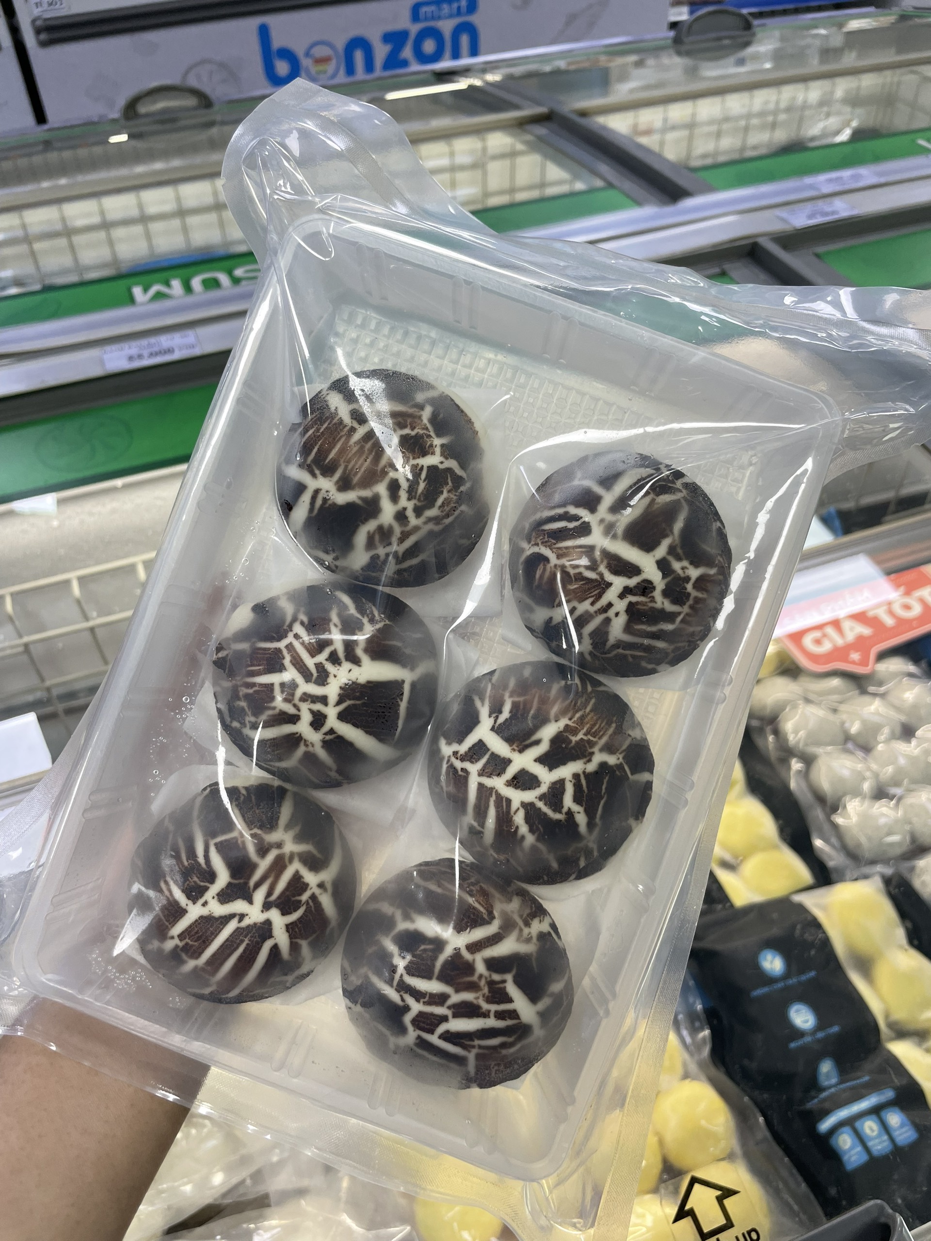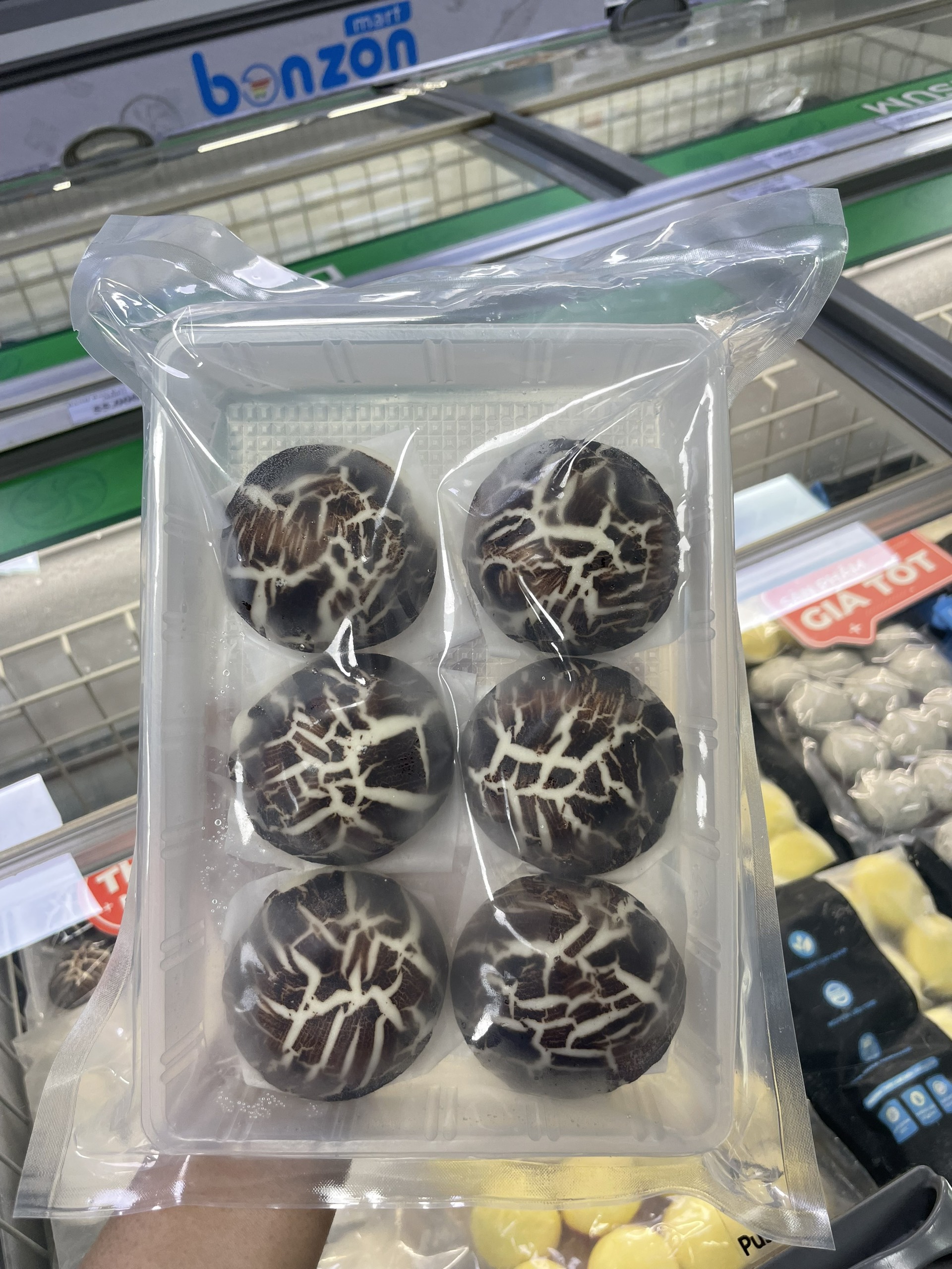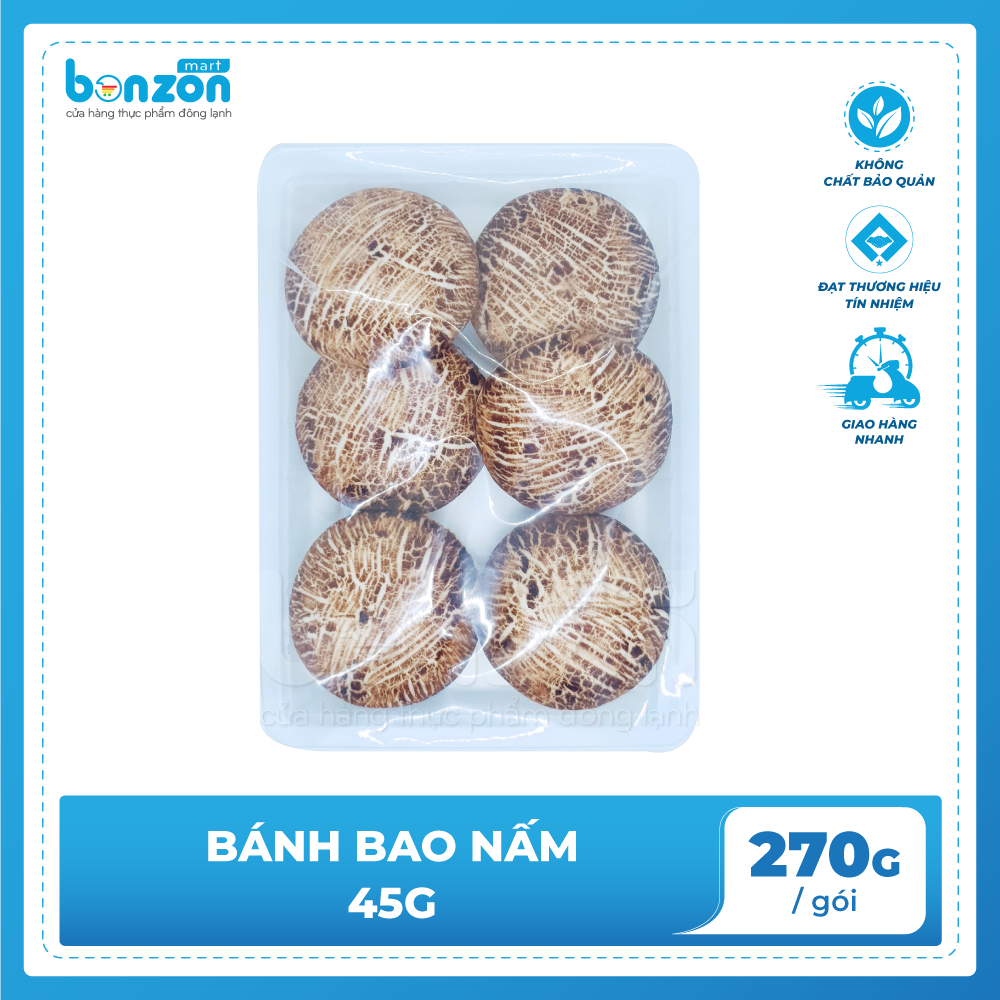 Mua tại TiktokVới sản phẩm tươi sống, trọng lượng thực tế có thể chênh lệch khoảng 10%. ĐỊNH LƯỢNG: 45g/cái x 270 g/gói THÀNH PHẦN: - Vỏ bánh bao, socola, sữa - Nhân: Nấm đùi gà, bột lúa mì, nước tương, gia vị MÔ TẢ SẢN PHẨM: - Vỏ bánh bao được điểm tô bằng lớp socola và được định hình thành cây nấm dễ thương - Bánh mềm xốp, nhân thơm mùi đặc trưng của nấm kết hợp với nước xốt độc quyền mang đến hương vị khó cưỡng CÁCH CHẾ BIẾN: - Không rã đông - Hấp 100°C, 6-7 phút - Microwave ở chế độ hấp: 3-4 phút BẢO QUẢN: - Bảo quản ở nhiệt độ -15°c đến -18°c hoặc trong ngăn đá tủ lạnh - Không đông lại sau khi đã rã đông HSD: 12 tháng
