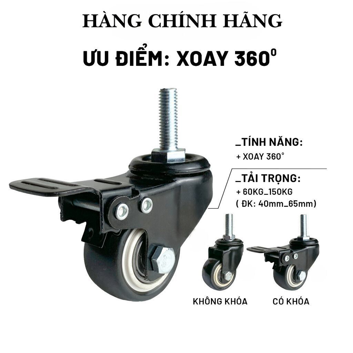 ✨Bánh Xe Đen Đầu Vít Xoay 360 Có Khóa, Hàng Chất Lượng ANKAN, Lắp Xe Đẩy Hàng, Tủ, Bàn Ghế