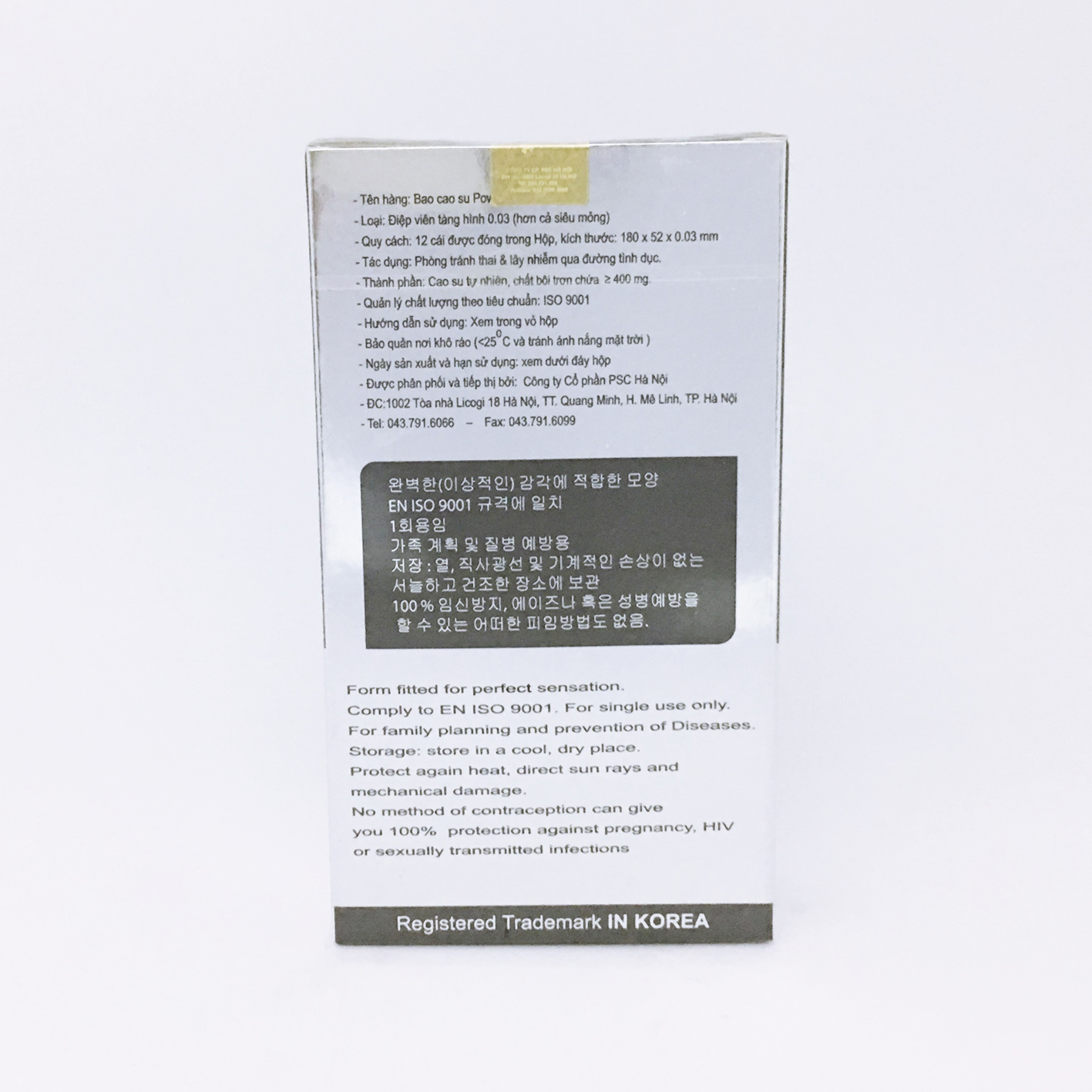 - Thành Phần: Cao su tự nhiên, chất bôi trơn >400mg