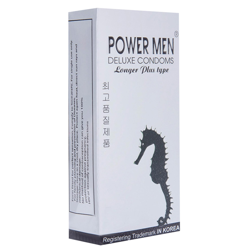 Bao cao su chống xuất tinh sớm cá ngựa bạc Power Men Longer Plus Type Là dòng bao cao su chống xuất tinh sớm với thiết kế có gai khắp thân bao giúp kích thích hưng phấn