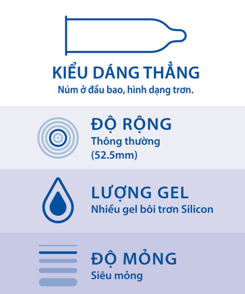 - Chủng loại: bao cao su siêu mỏng, bao cao su cao cấp, truyền nhiệt nhanh