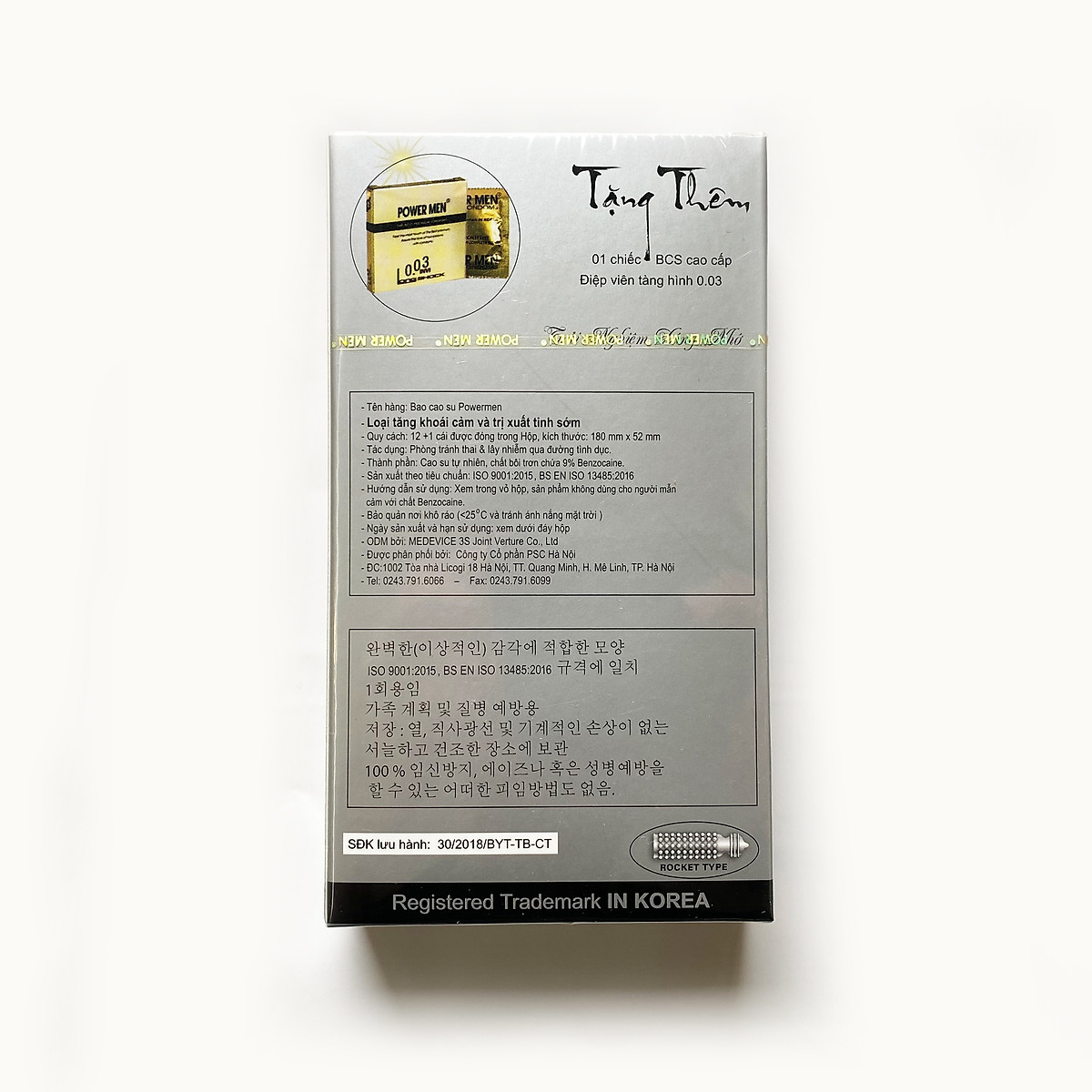 - Hãng sản xuất bao cao su nổi tiếng tại Hàn Quốc - Power Men trong năm 2017 lần đầu tiên cho ra mắt người dùng sản phẩm bao cao su siêu mỏng 0.03 với