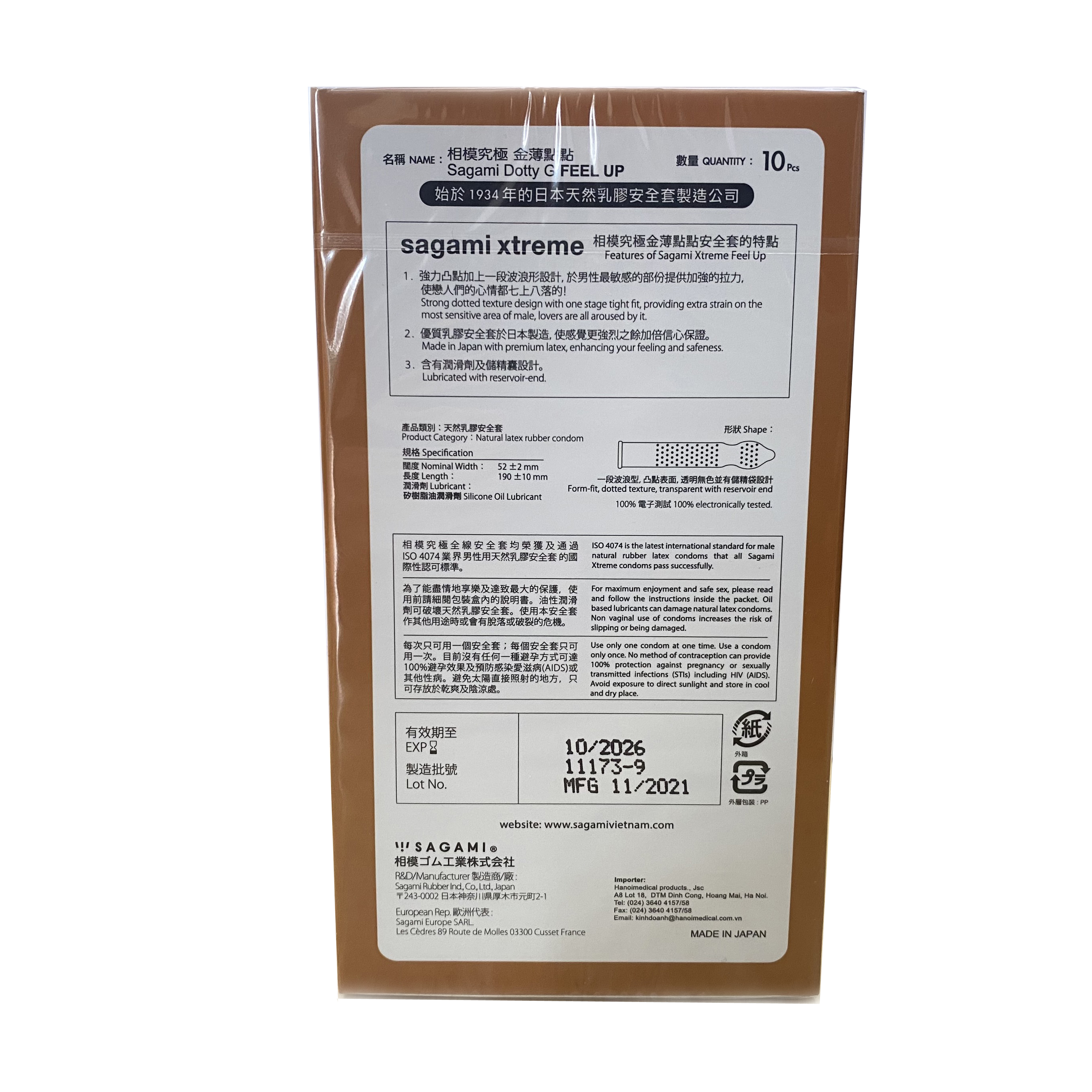 - Hạn sử dụng: Xem dưới vỏ hộp. Hướng dẫn sử dụng bao cao su Nhật Bản có gai Sagami Xtreme Feel Up: