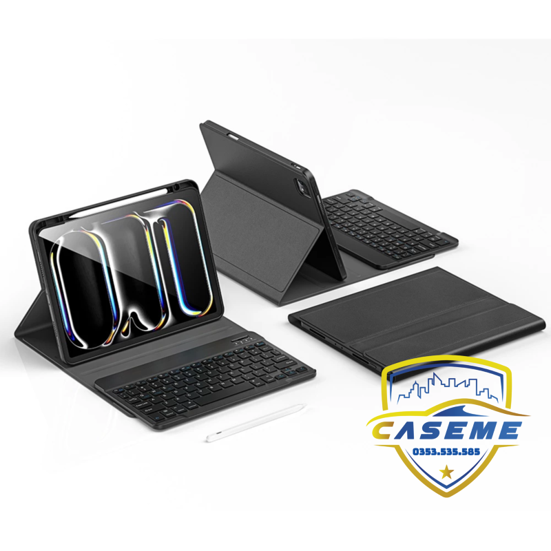 Wi WU MK-007 Pro 360° Keyboard Case là bao da bàn phím thông minh, biến iPad Pro M4 11 inch thành công cụ làm việc chuyên nghiệp. Trải nghiệm gõ mượt mà – phím cắt