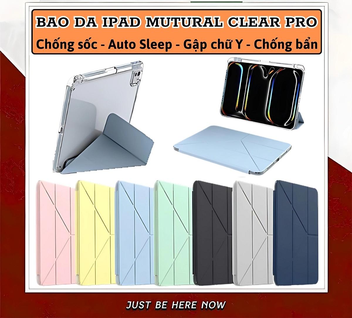 Bao Da iPad Có Giá Đỡ Gập Thông Minh Chống Sốc, Tự Tắt Mở Màn Hình, Hỗ Trợ Apple Pencil – Viền TPU, Mặt Lưng Trong Suốt Cao Cấp Bao da iPad thế hệ mới