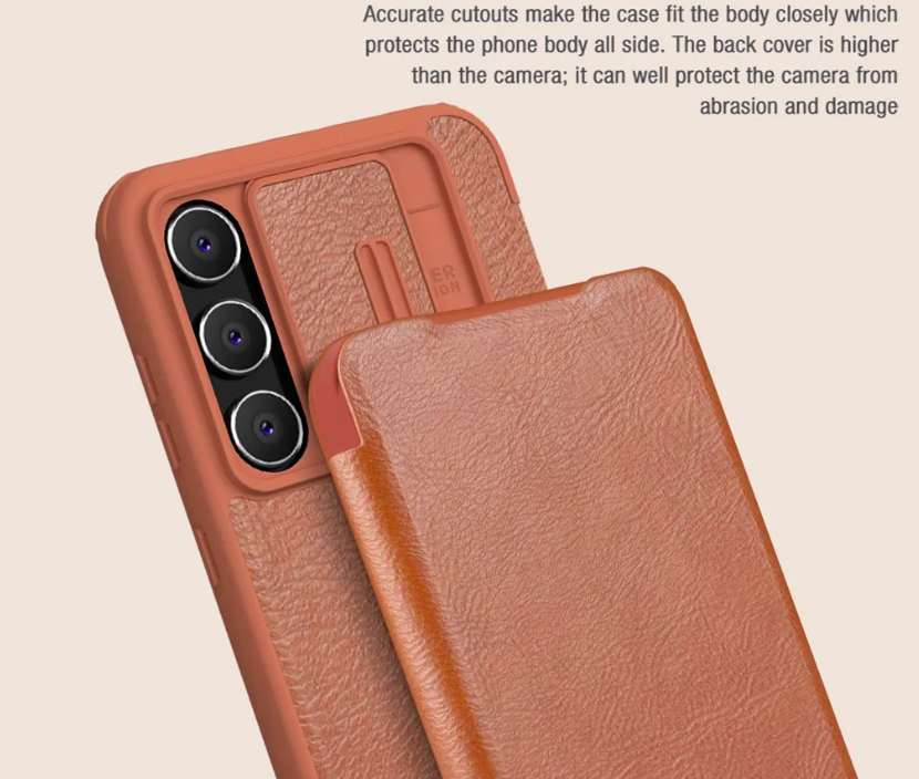 ✨Bao da cho SamSung Galaxy S24 FE chính hãng Nillkin QIN có nắp trượt bảo vệ camera sau - Hàng chính hãng