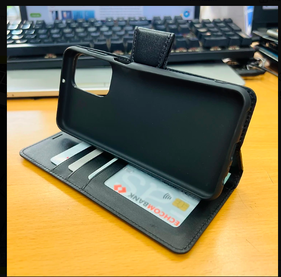 Bao da được làm từ chất liệu da cao cấp, bền chắc, rất khó bị trầy, bong tróc và khó bám bẩn. Mặt trước bao da có ngăn đựng tiền, và các ngăn phụ để card visit, thẻ ATM….
