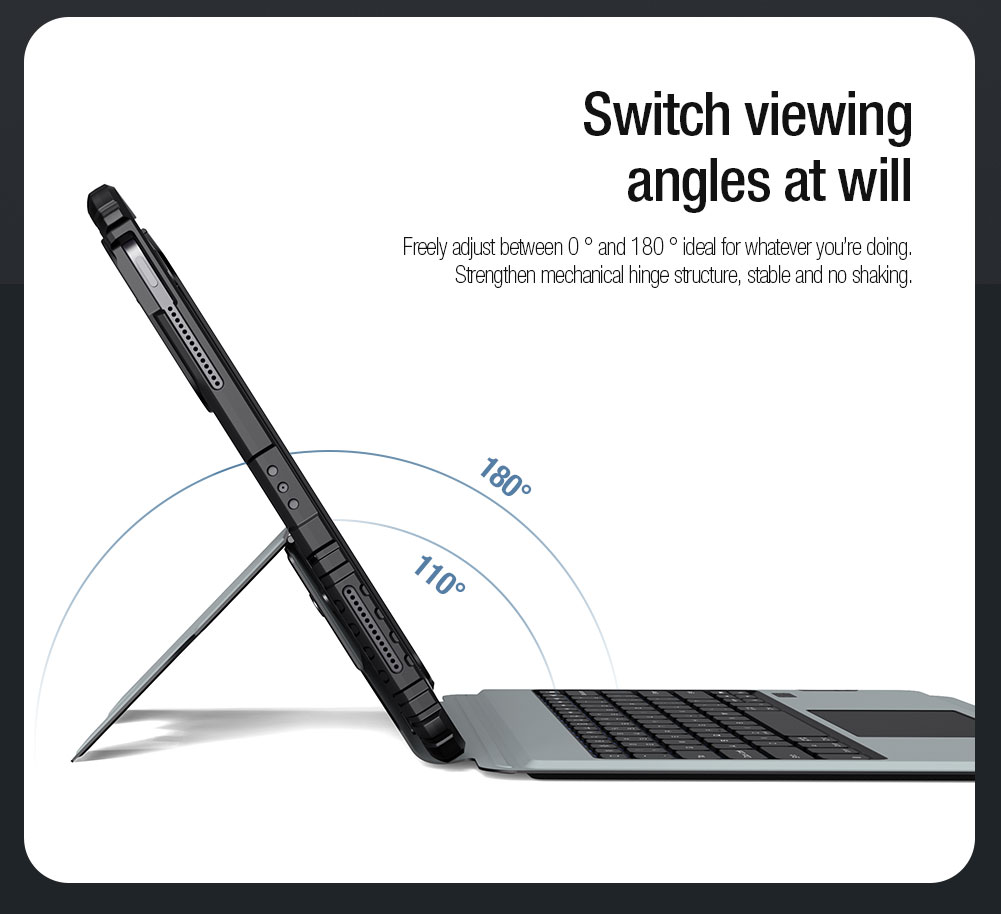 - Giá đỡ Apple Pencil tích hợp giúp lưu trữ bút an toàn và sạc dễ dàng. Nillkin Bumper Combo Case Keyboard chính là lựa chọn lý tưởng để nâng tầm trải nghiệm iPad của bạn!
