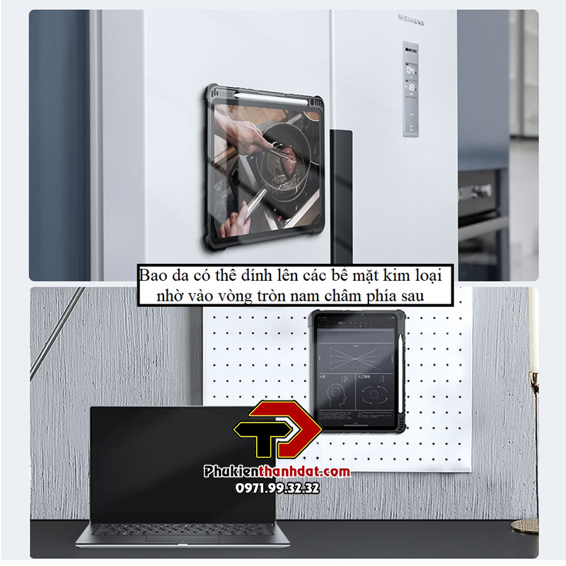 Phần lưng bao da có vòng tròn nam châm có thể hút vào các bề mặt kim loại giúp bạn có thể gắn iPad của mình lên trên bề mặt đó khi cần thiết.