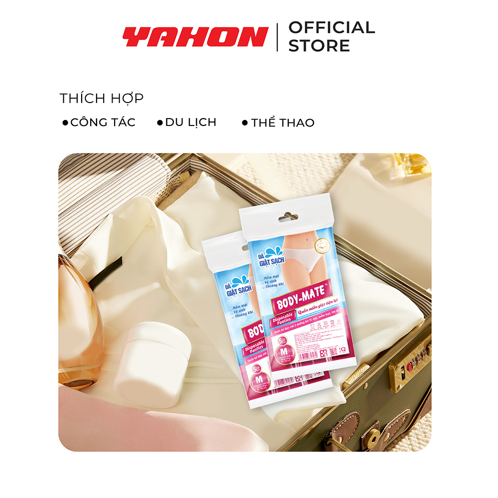 Mua tại TiktokQUẦN MIỄN GIẶT BODY-MATE NỮ Chất liệu TC mềm mại, thấm hút, thoáng khí và vô cùng thoải mái khi mặc. Thiết kế 3D vừa vặn, ôm sát vòng mông với 02 miếng lót dày, mềm, thấm hút. Sản phẩm đã được giặt sạch, sấy khô trước khi đóng gói và tái sử dụng sau khi mặc. Có thể sử dụng ngay khi mở gói. Vô cùng vệ sinh, tiện lợi. Thành phần: Vải TC Quy cách: Size M: Vòng mông 84 - 94 cm; 5 cái/bao, 96 bao/thùng Size L: Vòng mông 92 - 100 cm; 5 cái/bao, 96 bao/thùng Size XL: Vòng mông 100 - 115 cm; 5 cái/bao, 96 bao/thùng Hạn sử dụng: 3 năm kể từ ngày sản xuất NSX: in trên bao bì