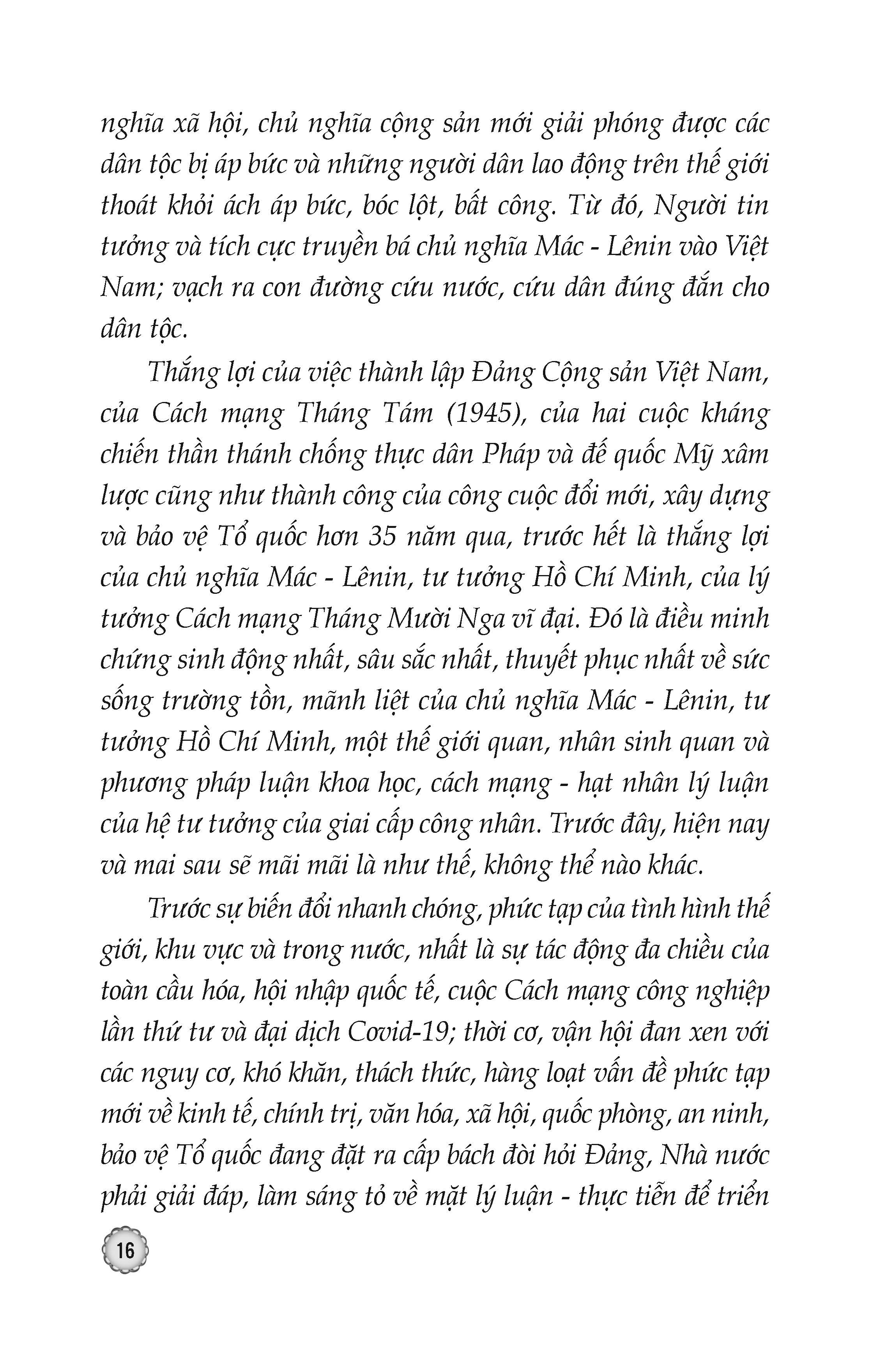 Cuốn sách tuyển chọn các bài nói, bài viết, bài phát biểu, trả lời phỏng vấn, thư, điệ của đồng chí Tổng Bí thư Nguyễn Phú Trọng, thể hiện tư tưởng nhất quán, xuyên suốt