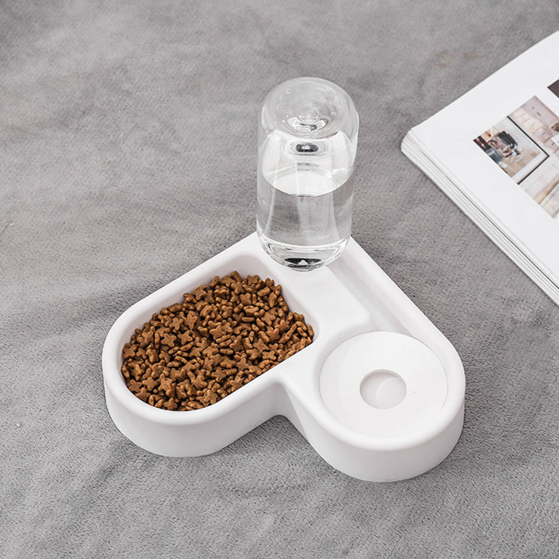 Bát ăn tự động cho chó mèo có thiết kế thông minh, một bên là bát ăn kèm bình đựng hạt và bên là bát đựng nước có gắn bình + Bát Ăn Tự Động