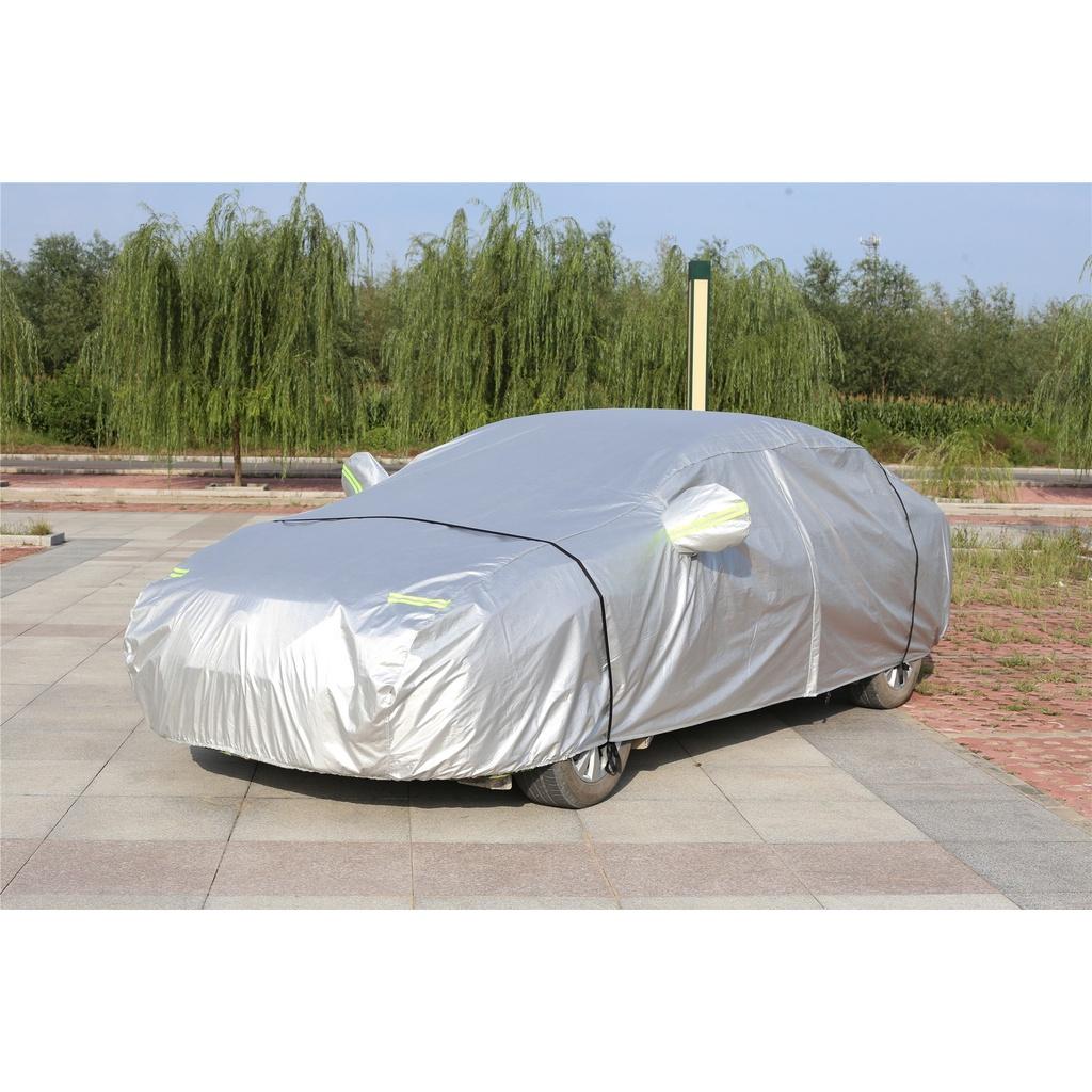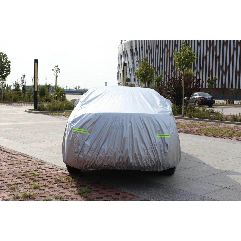 Bạt phủ xe ô tô 7 chỗ 3 lớp tráng nhôm cách nhiệt, chống nóng, chống thấm, chống bụi bẩn - Bạt phủ xe có mặt ngoài là chất liệu vải PEVA tráng nhôm phản