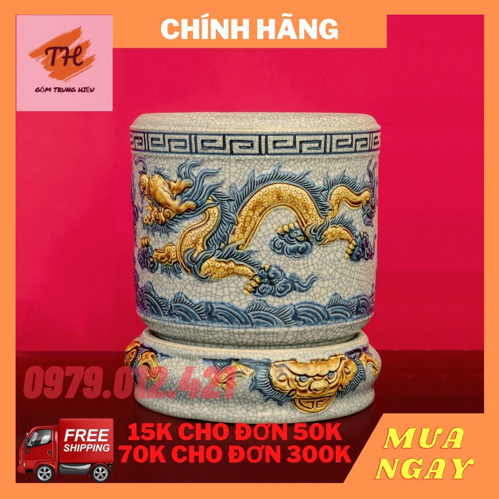 Bát hương men rạn Rồng đắp nổi dát vàng 24k Hàng Bát Tràng cao cấp