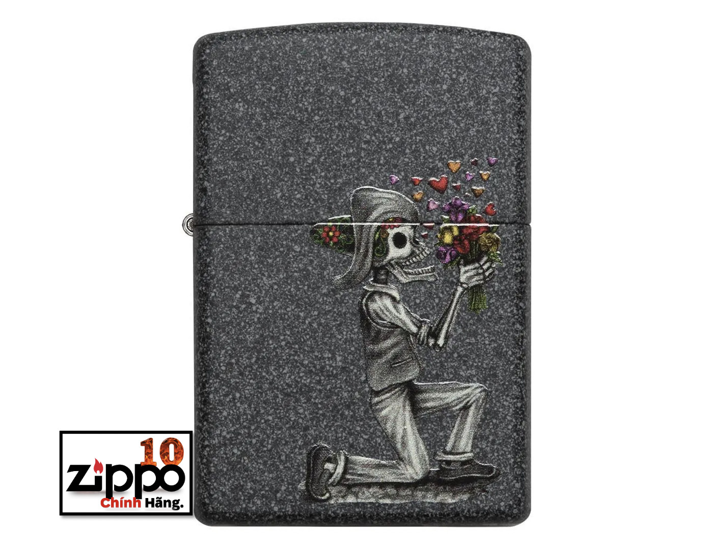 Cái chết không thể ngăn được tình yêu đích thực. Bộ hai chiếc bật lửa chống gió Iron Stone này ghi lại câu chuyện tình yêu lãng mạn. Được đóng gói trong một hộp đựng dạng quà tặng. Để tối ưu hiệu suất, hãy dùng nhiên liệu bật lửa của Zippo.