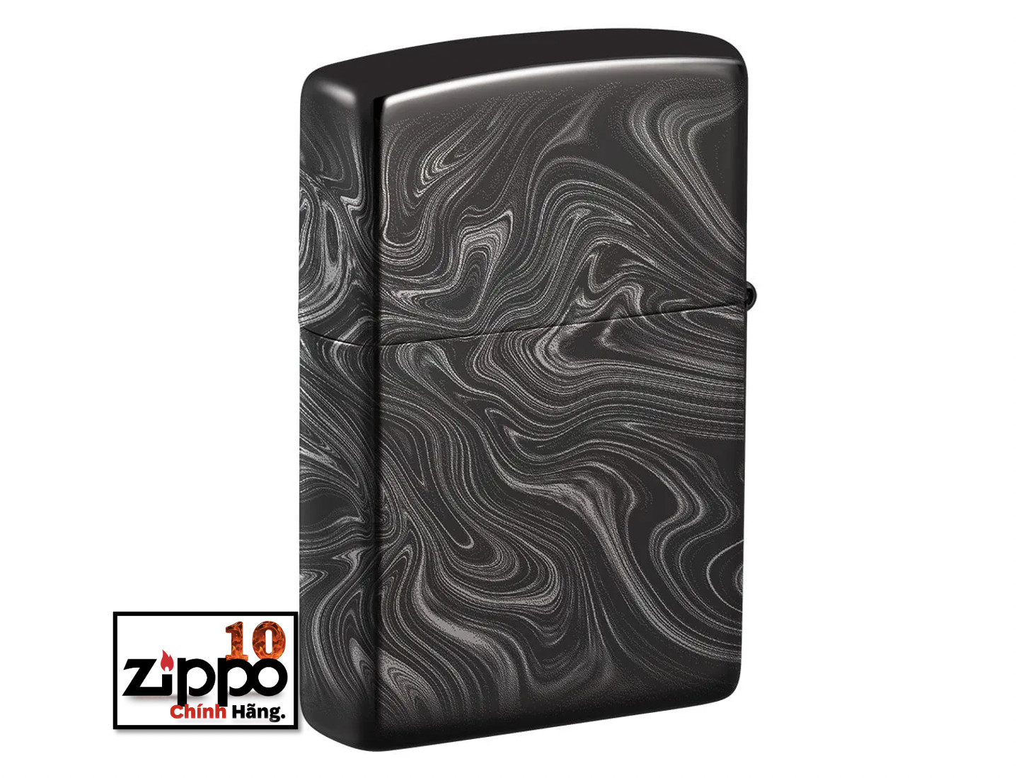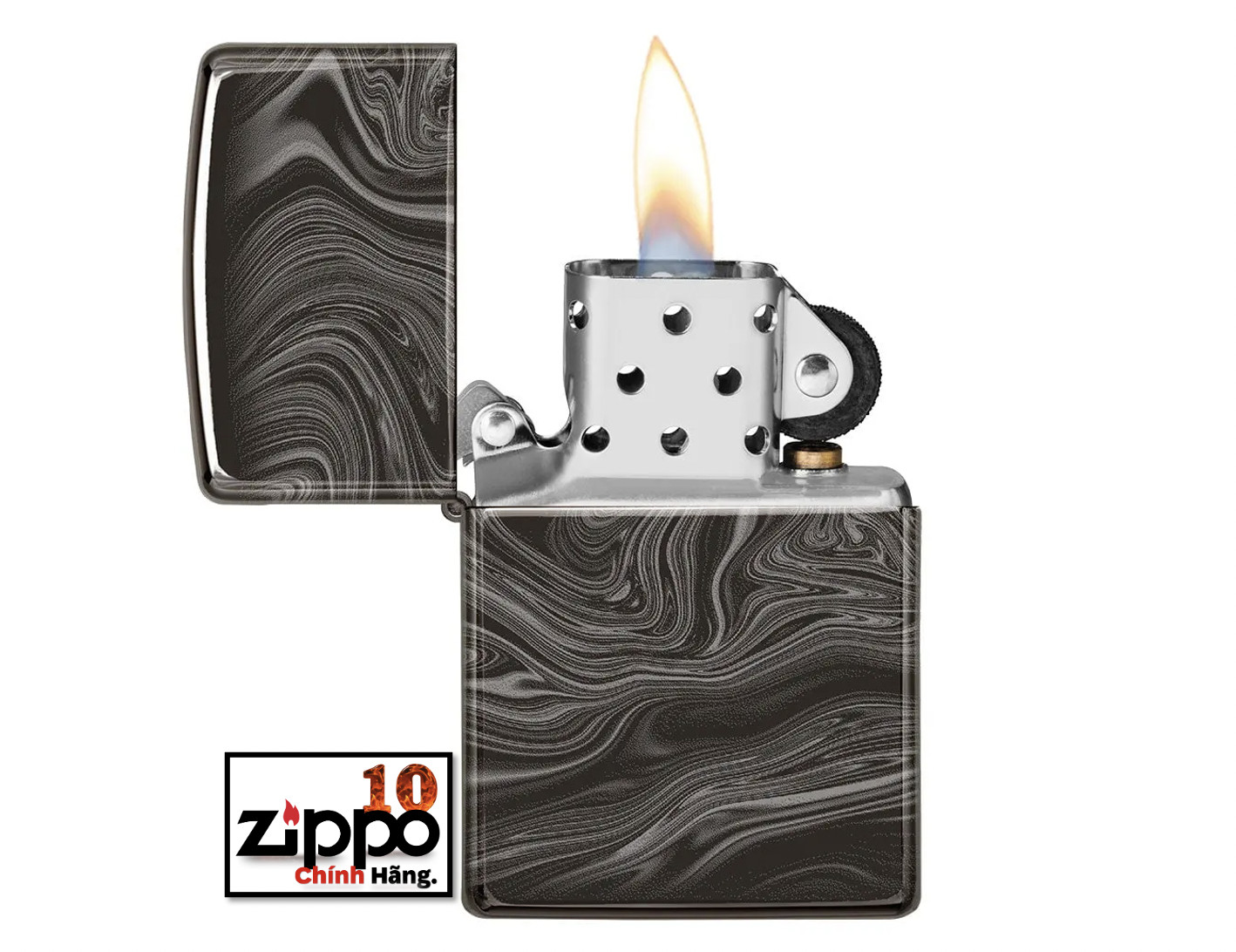 Thiết kế mới hoa văn vân đá cẩm thạch được tạo trên chiếc bật lửa Zippo đồng thau, nền mạ High Polish Black bằng qui trình in hình ảnh màu 360° của Zippo. Được đóng