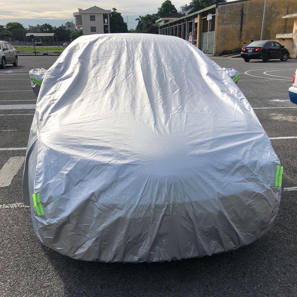 Bạt phủ xe ô tô 7 chỗ 3 lớp tráng nhôm cách nhiệt, chống nóng, chống thấm, chống bụi bẩn - Bạt phủ xe có mặt ngoài là chất liệu vải PEVA tráng nhôm phản