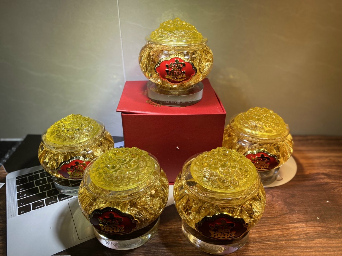 Mua tại TiktokBát Tụ Bảo vàng lá Thần Tài đế thủy tinh 12cm phong thủy - sung túc chiêu Tài đón Lộc