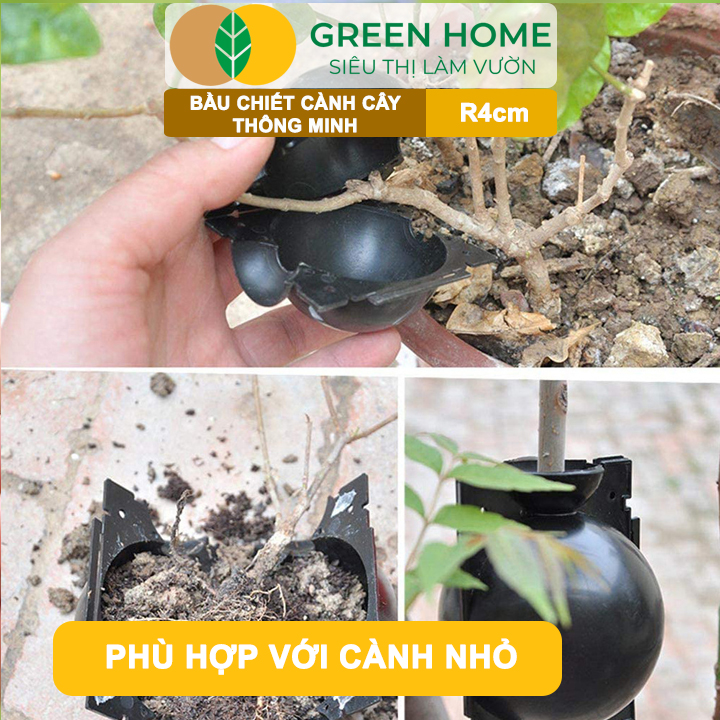 GIÁ SỈ SIÊU LỢI: Giá chỉ còn 289k Số lượng: 5 thùng ĐẶC ĐIỂM NỔI BẬT : - Thiết kế siêu nhỏ gọn – tối ưu cho cành mảnh, thân yếu - Khả năng giữ ẩm cực tốt – giúp rễ non phát triển nhanh - Thao tác dễ dàng ở vị trí hẹp hoặc gần gốc cây - Tiết kiệm nguyên liệu – lý tưởng cho chiết số lượng lớn - Tái sử dụng dễ dàng, không biến dạng sau nhiều mùa vụ Bầu Chiết Cành GreenHome, R4cm(1 Thùng 200 cái), Tăng Khả Năng Ra Rễ, Phù Hợp Với Hoa Hồng, Bonsai Thiết kế siêu nhỏ gọn – tối ưu cho cành mảnh, thân yếu Khả năng giữ ẩm cực tốt – giúp rễ non phát triển nhanh MÔ TẢ SẢN PHẨM: - Tên sản phẩm: Bầu chiết cành nhựa R4cm - 1 Thùng 200 Bầu Chiết - Kích thước: Đường kính 4cm - Màu sắc: Đen bóng, dễ quan sát rễ - Chất liệu: Nhựa cứng ABS, độ bền cao - Thiết kế: 2 nửa tròn ghép lại, khóa gài 4 cạnh - Đặc điểm nổi bật: Nhẹ – bám sát cành – giữ ẩm tốt - Phù hợp với cây: Bonsai, kim ngân, hoa hồng, nguyệt quế, tùng la hán, sung mini... - Trọng lượng ~10g/bầu - Chi tiết nổi bật: + Miệng bầu ôm chặt thân cây, không trượt – không gây tổn thương cành non. + Đáy bầu có lỗ thoát nước nhỏ, giúp rễ không bị úng. + Khoang chứa giá thể vừa đủ cho rễ phát triển, không gây áp lực cho cành yếu. + Phù hợp thao tác bằng 1 tay, kể cả với người ít kinh nghiệm. Thao tác dễ dàng ở vị trí hẹp hoặc gần gốc cây Tiết kiệm nguyên liệu – lý tưởng cho chiết số lượng lớn