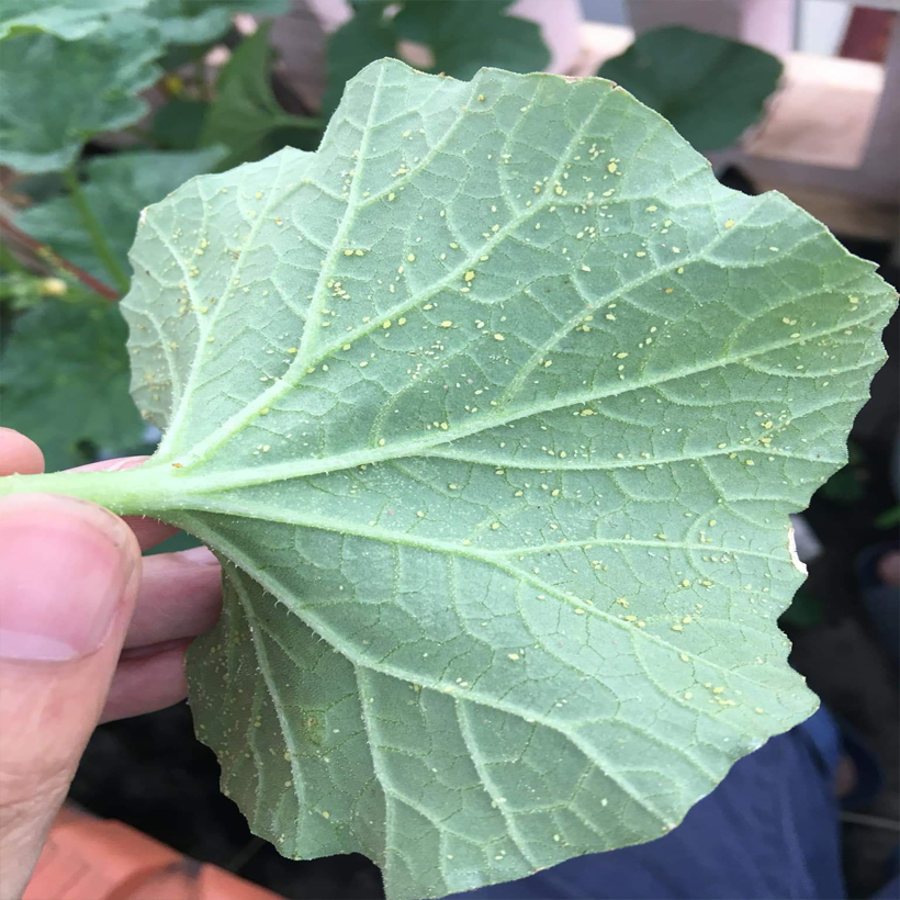 - Bọ phấn có kích thước rất nhỏ, thông thường nằm mặt dưới lá, khi mật số cao chúng di chuyên lên hoa, thân và quả. Chúng chích hút nhựa cây, làm cây suy yếu, còi cọc, ảnh hưởng đến sự sinh trưởng – phát triển, gây thiệt hại nặng đến năng suất cây dưa lưới…