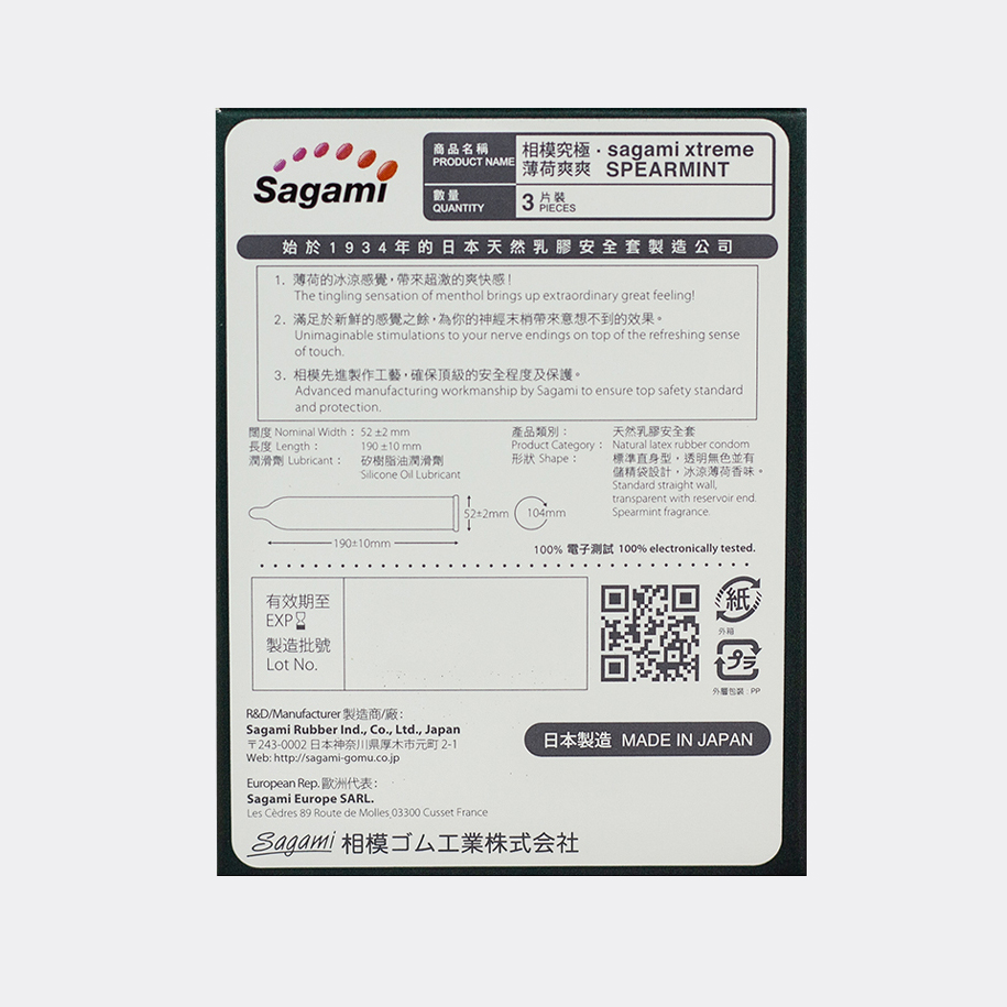 Bao cao su Sagami Xtreme Spearmint là dòng bao cao su mỏng trơn cao cấp của hãng Sagami (Nhật Bản) vừa được giới thiệu ra thị trường với tính năng nổi bật là có mùi hương bạc