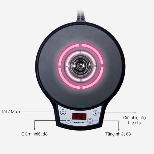 Mua tại TiktokBẾP KIÊM ẤM RÓT HAND POUR CAFE DE KONA - SIÊU PHẨM ẤM TIỆN DỤNG KHÔNG THỂ BỎ LỠ. Ấm được thiết kế với tính thẩm mỹ và cực tiện dụng, phù hợp với kiểu pha chuẩn Pour Over . Dung tích 700ml. Công suất 1000W tăng tốc thời gian đun nước. Tay cầm gỗ chắc chắn mang đến sự thư giãn khi rót. Nút điều chỉnh đa chức năng. Tắt / Mở tiện dụng. Tăng / Giảm nhiệt độ. Giữ nhiệt liên tục trong 60 phút. Vòi rót chuẩn xác tuyệt đối cho kiểu pha Pour over. Với đường kính 8mm kiểm soát dòng nước cực kì êm ái .