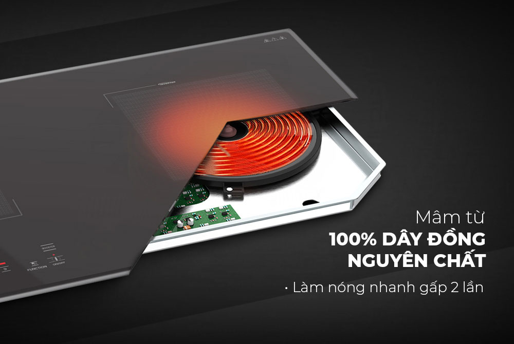 - Loại bếp: Bếp từ đôi - phù hợp với các loại nồi chảo có đáy nhiễm từ, đun nấu cực nhanh và an toàn cho người sử dụng, không trực tiếp tỏa ra nhiệt