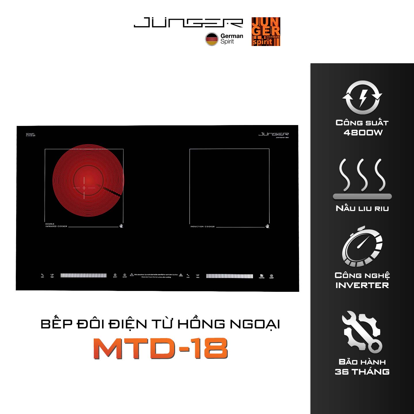 ✨Bếp đôi điện từ hồng ngoại JUNGER MTD-18 3400W Không kén nồi Hàng Chính Hãng Bảo Hành 36 Tháng