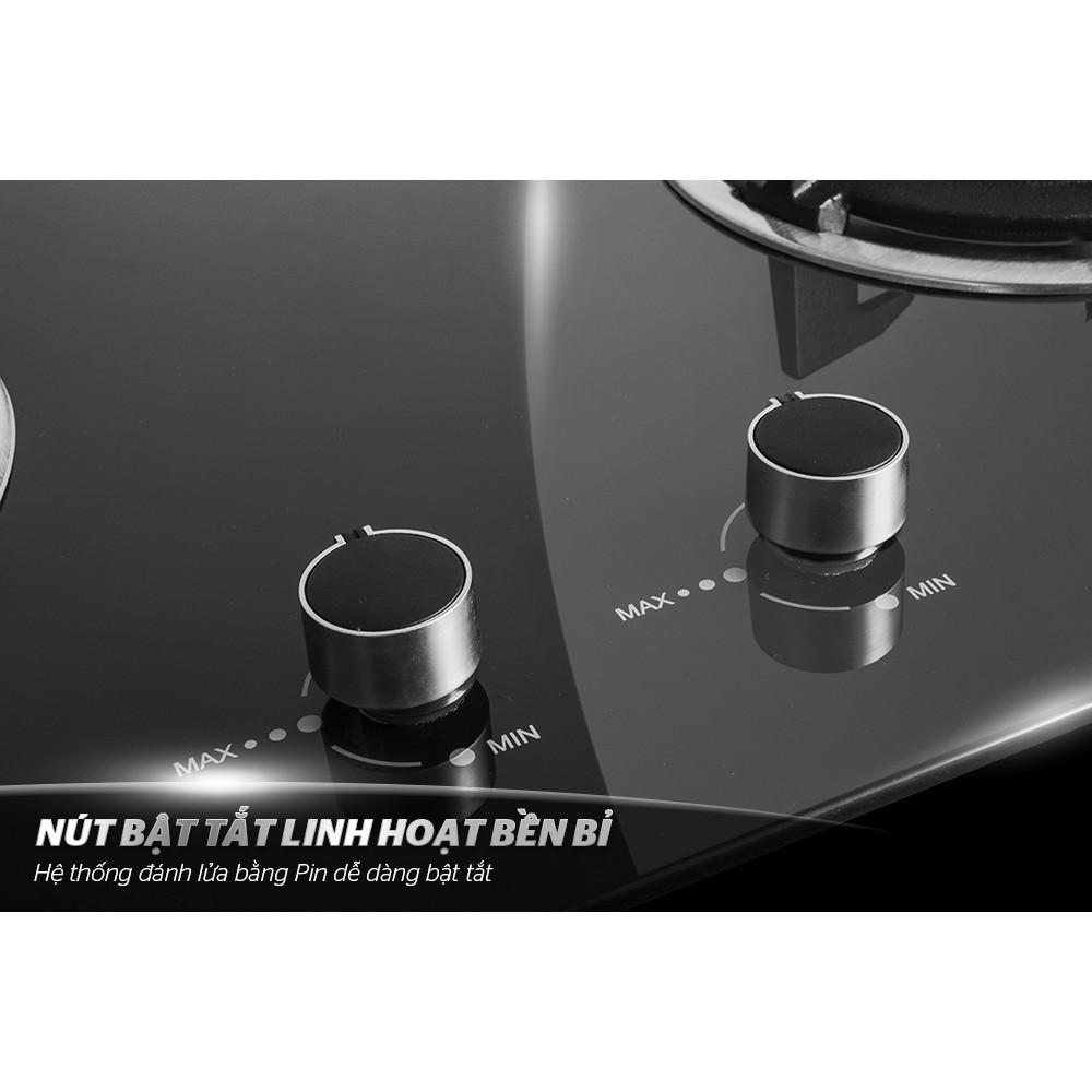 Đầu đốt được thiết kế với nhiều khe nhỏ, bát chia lửa lớn giúp ngọn lửa tỏa đều (3 vòng lửa), nấu ăn nhanh, được trang bị cả đầu hâm nên rất tiết kiệm gas. Được làm từ đồng thau chống bào mòn sử dụng lâu dài, đầu đốt sẽ không bị biến dạng dù cho việc sử dụng dưới nhiệt độ cao trong một khoảng thời gian dài khi ninh, hầm,… Họng bếp bằng thép không gỉ, không sinh ra muội đen, cho ngọn lửa xanh không đen đáy nồi, tiết kiệm nhiên liệu và an toàn khi sử dụng.