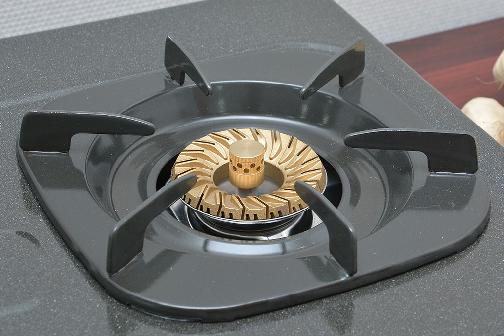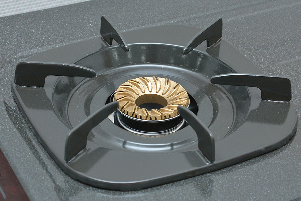 Đầu đốt bằng đồng thau cho ngọn lửa xanh khi nấu Không bị biến dạng ở nhiệt độ cao, sử dụng bền.  của  thiết kế các rãnh xoáy giúp ngọn lửa tập trung ở vị trí trung tâm giúp nấu thức ăn nhanh chín, tăng hiệu suất sử dụng, tiết kiệm gas.