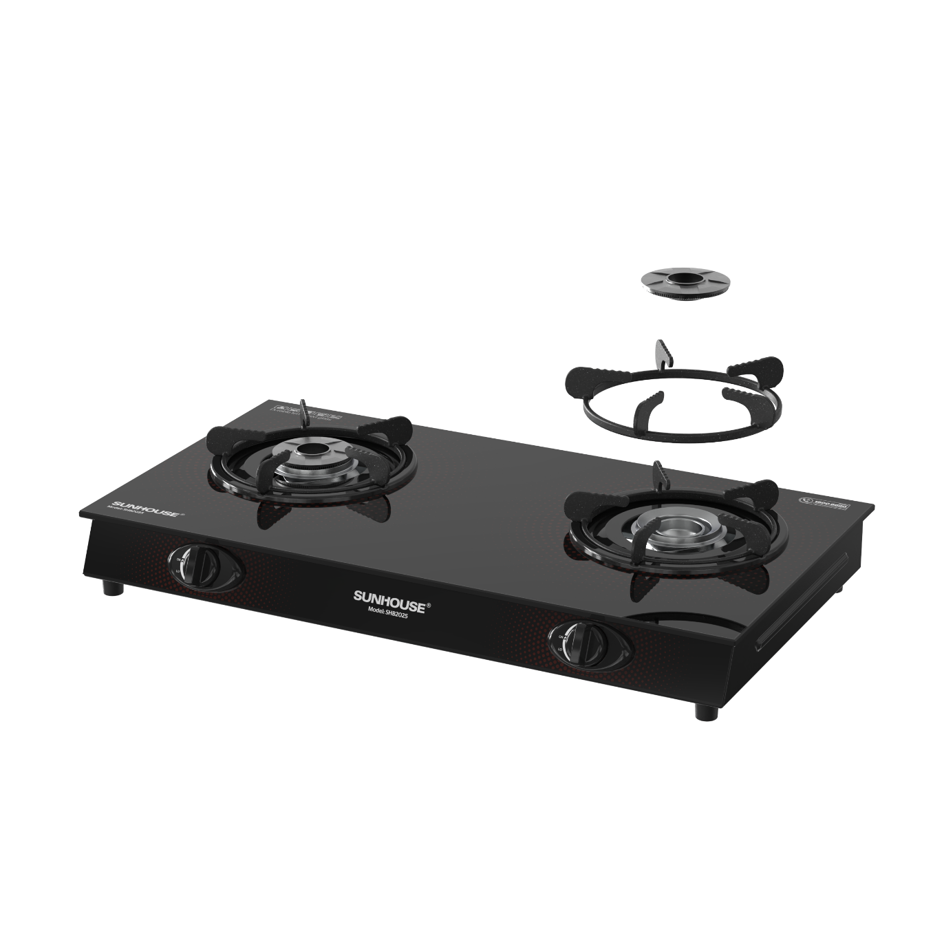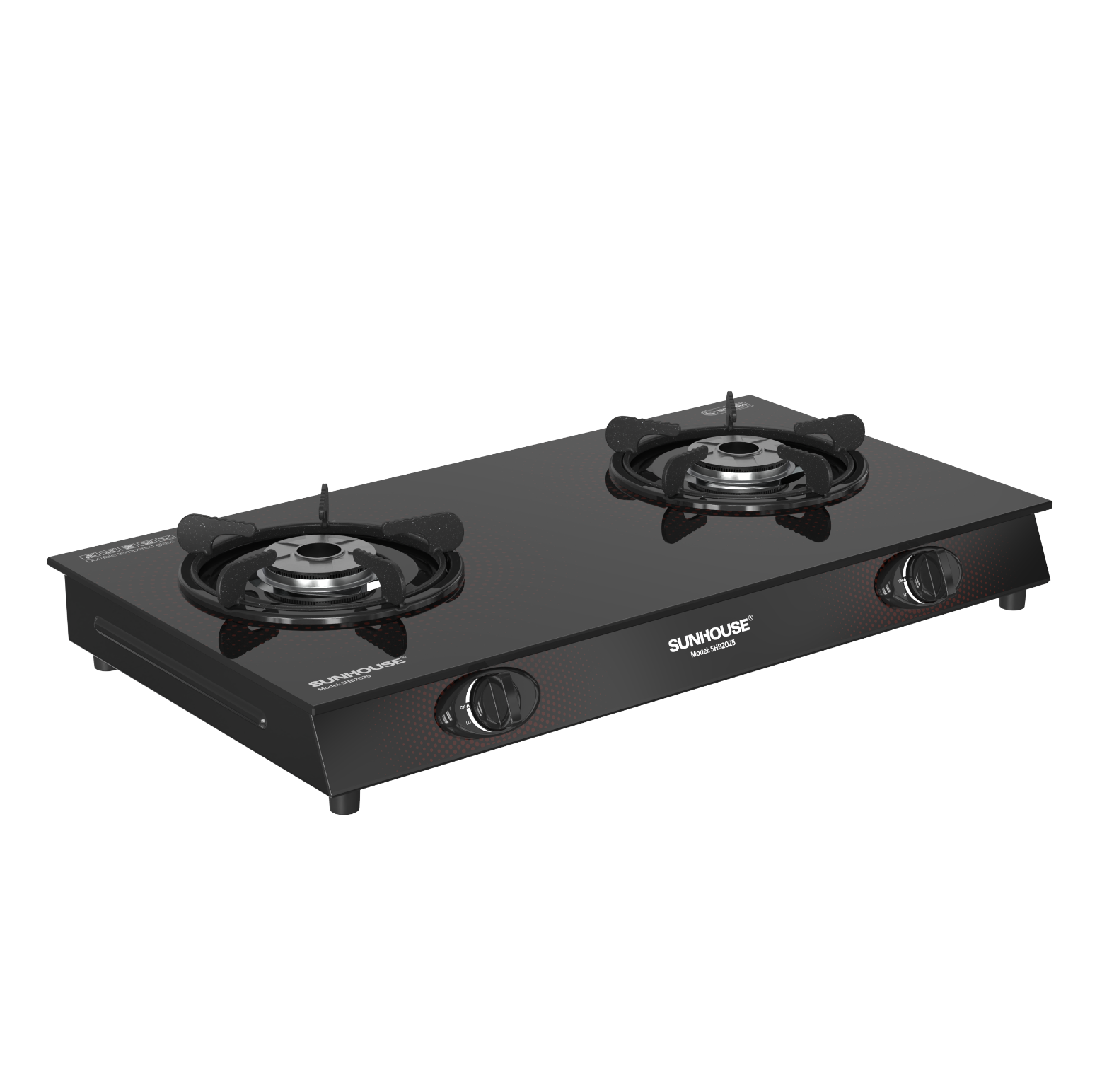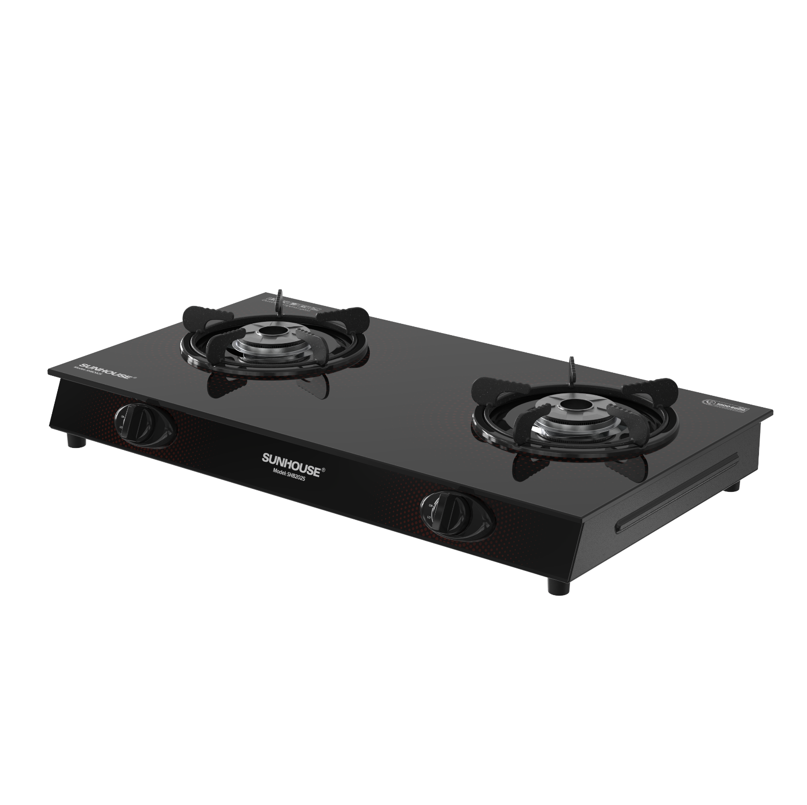 Bếp gas dương kính SUNHOUSE SHB2025 có 2 vùng đun, điều khiển lửa to, nhỏ bằng núm vặn tiện lợi, chế biến được nhiều món ăn cùng lúc. Mặt kính với gam màu đen trang nhã, sang trọng kết hợp cùng hoạ tiết kẻ sọc tinh tế.