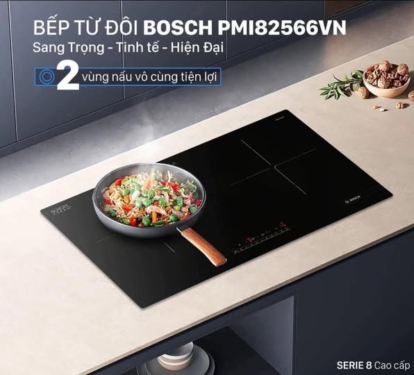 - Bếp từ 2 vùng nấu - Mặt kính Keramik vát 4 cạnh, bo viên Aluminum. - Điều khiển 2 phím Slider với 9 mức công suất. - Hẹn giờ độc lập cho 2 vùng