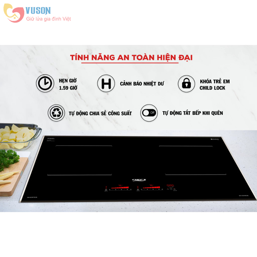 Cảnh báo nhiệt dư: Sau khi sử dụng, nếu vùng nấu mặt bếp còn nóng, màn hình LED sẽ hiển thị chữ H để cảnh báo để người dùng không chạm tay vào mặt bếp gây bỏng.