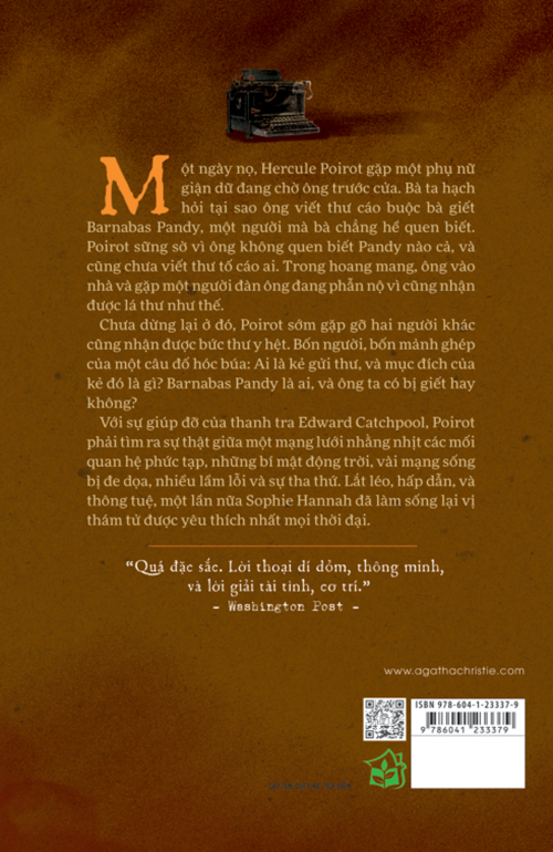 Với sự giúp đỡ của thanh tra Edward Catchpool, Poirot phải tìm ra sự thật giữa một mạng lưới nhằng nhịt các mối quan hệ, những bí mật động trời, những mạng sống bị đe dọa, nhiều lầm lỗi và sự tha thứ. Lắt léo, hấp dẫn, và thông tuệ, một lần nữa Sophie Hannah đã làm sống lại vị thám tử được yêu thích nhất mọi thời đại.