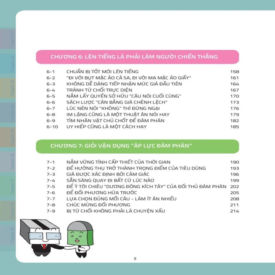 Cuốn sách này dựa trên những ví dụ thực tế trong cuộc sống, kết hợp hình minh họa vui nhộn, sẽ chỉ ra cho bạn biết phải chuẩn bị thế nào trước khi đàm phán để đối thủ đồng thuận với cách của bạn, để bạn giành chiến thắng tối đa trong các cuộc đàm phán.