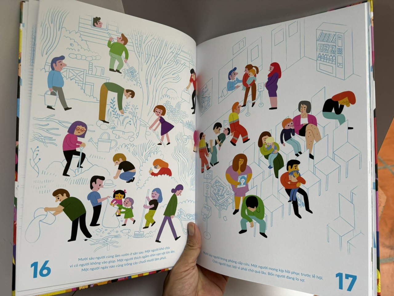 Trong tay bạn lúc này là cuốn sách tranh đặc biệt với câu chuyện về 7.8 tỉ người trên hành tinh. Bạn có thể dùng sách để đếm số người, luyện mắt tinh và nếu đủ tinh ý, bạn sẽ khám phá ra vô số bí mật ẩn giấu trong từng bức tranh, thậm chí tìm thấy câu chuyện của chính mình! Qua đó, sách truyền tải thông điệp tôn vinh sự khác biệt của mỗi người.