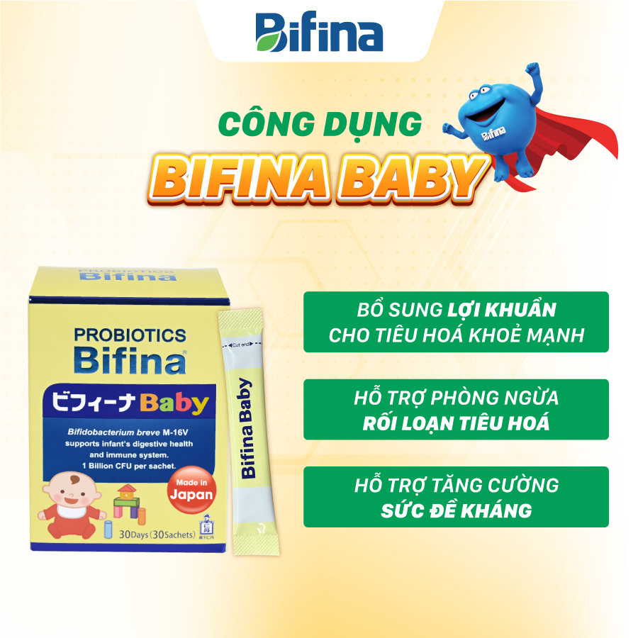 ✨Bifina Baby Nhật Bản - Hộp 30 gói - Hỗ trợ bổ sung lợi khuẩn, tăng đề kháng cho trẻ sinh non, sinh mổ, dùng sữa công thức