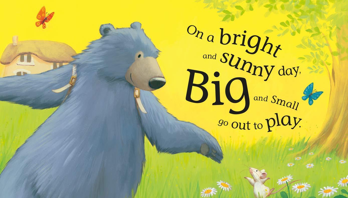 Big and Small head out to play. They climb a hill and cross a stream, but with each new adventure, Small finds himself in trouble. Each time Small asks Bear for a little help, please! When they return home, it is Big who needs help from Small for something very important!