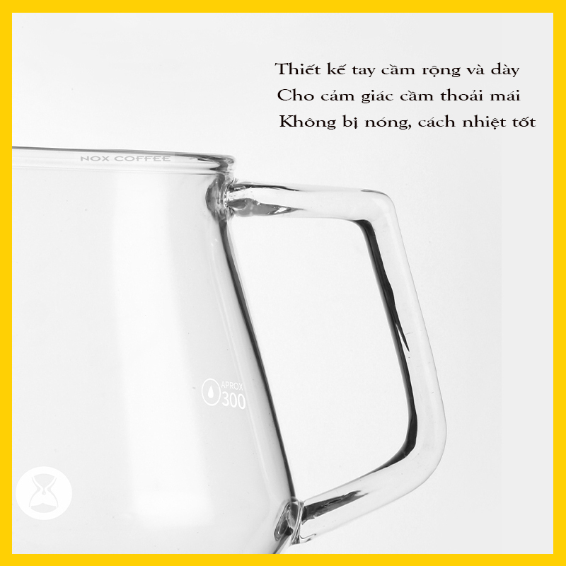 Thông tin sản phẩm: - Dung tích: 360ml, 600ml - Kích thước: 103*95mm / 110*113mm - Trọng lượng: 242 / 268g - Chất liệu: thủy tinh borosilicate, silicon - Thương hiệu: Timemore Mô tả chi