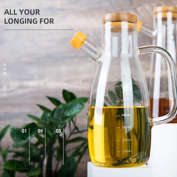 Bình Thủy Tinh Rót Dầu Ăn/Nước Mắm Có Vòi & Phễu Tích Hợp – Dung Tích 500ml – Chai Đựng Gia Vị Thông Minh, Chịu Nhiệt, Có Vạch Chia Thông Tin Chung - Dung tích: