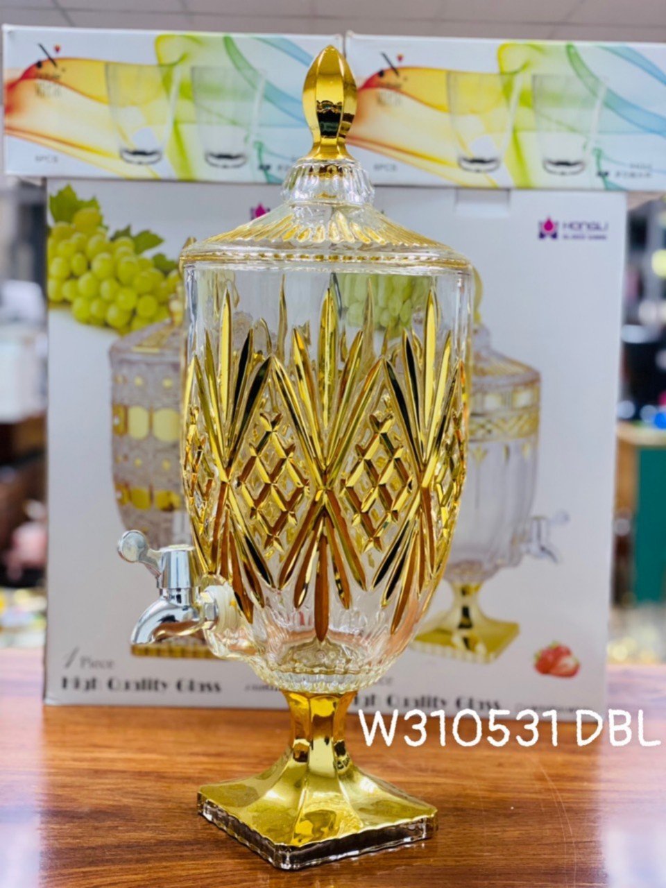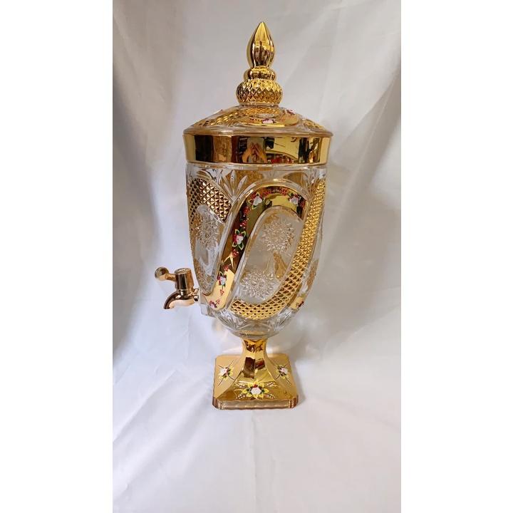 ✨BÌNH ĐỰNG NƯỚC UỐNG THỦY TINH VÀNG PHIÊN BẢN KHẢM VÀNG ĐẶC BIỆT CÓ VÒI RÓT TIỆN LỢI 4,5 LÍT ( GIAO HOA VĂN NGẪU NHIÊN )